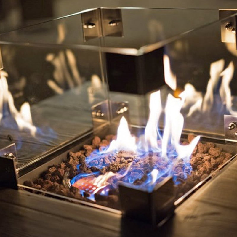 Уличный газовый стол камин clifton large stone, уличное оборудование. Увеличенная модель газового стола камина – это большой стол с широкой столешницей вокруг живого пламени. Настоящий регулируемый костер в центре вашего стола – отличное дополнение для долгого прохладного вечера. Языки пламени создают приятную атмосферу, а костер обогревает собравшихся за столом. Композитные керамические материалы имитируют натуральные поверхности и не боятся непогоды. Газовый стол камин Clifton Large – новинка, которая заменит уличные газовые обогреватели и украсит ваш вечер. Стол поставляется с лавовым наполнителем, который можно опционально заменить на керамический композит, добавляющий блеска. Стол-камин оснащен автоподжигом и регулирокой пламени. Длина, см 88 Ширина, см 88 Высота, см 71 Мощность, кВт 15 Размещение газового балона Внутри стола