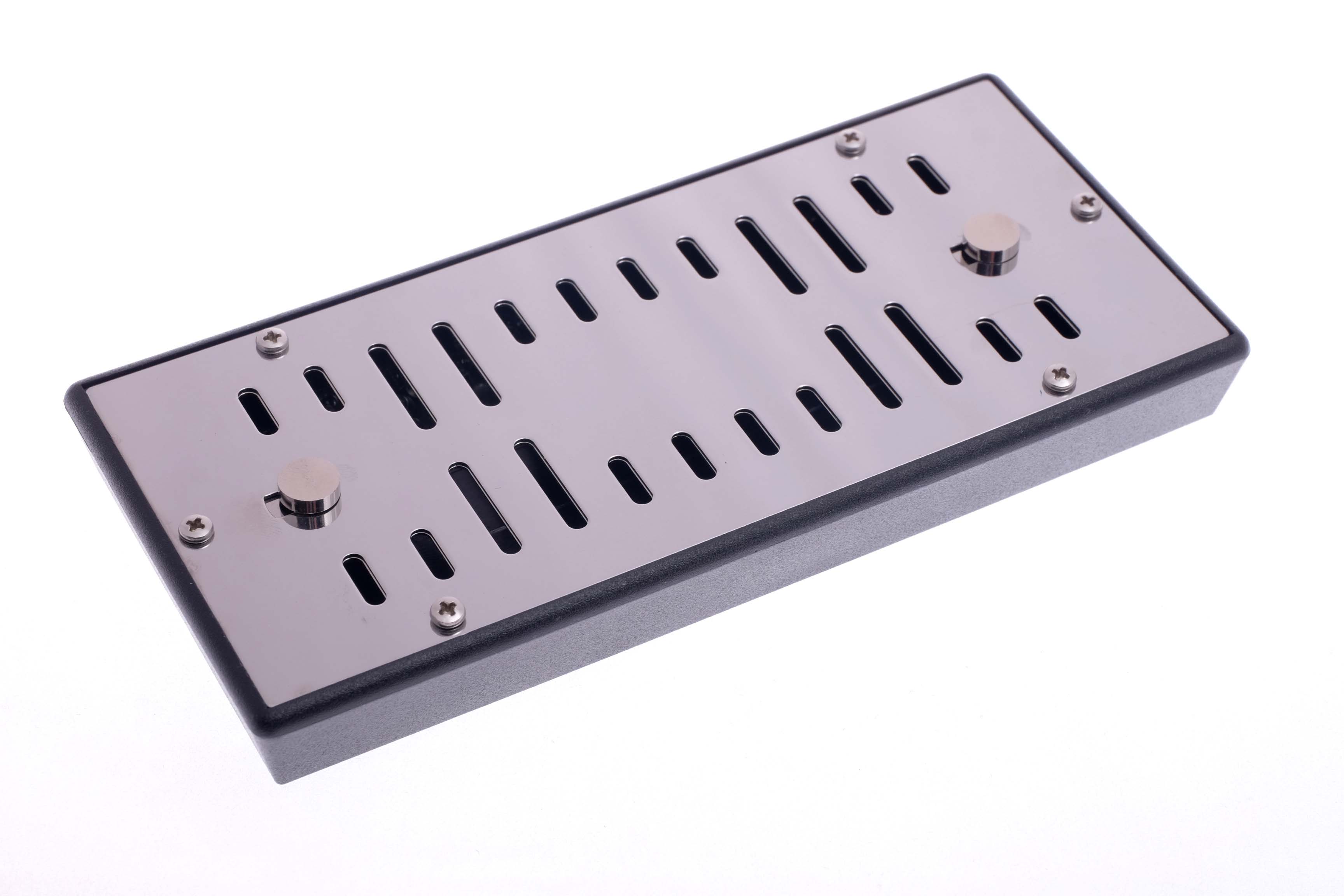 Увлажнитель акриловый passatore на 75 сигар со шторками, серебристый. Увлажнитель немецкой марки Passatore на 75 сигар. Корпус- пластик+ металлическая решетка со шторками для регулировки влагоотдачи, внутри — акриловые шарики нового поколения. При заполнении дистиллированной водой шарики за 30 минут увеличиваются в размере с 2 до 10-12 мм и автоматически поддерживают влажность в хьюмидоре на уровне 70-75% в течение 20-30 дней. При высыхании увлажнителя шарики уменьшаются обратно, что служит сигналом для повторной заправки дистиллированной водой. В комплекте магнитное крепление на крышку/стенку хьюмидора и инструкция по эксплуатации. Материал Пластик, металл, акриловые шарики Производитель Passatore, Германия Размер 16х7,5х2