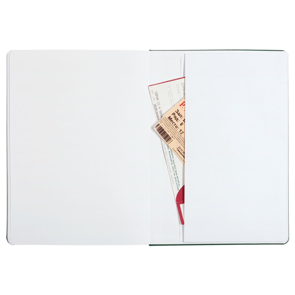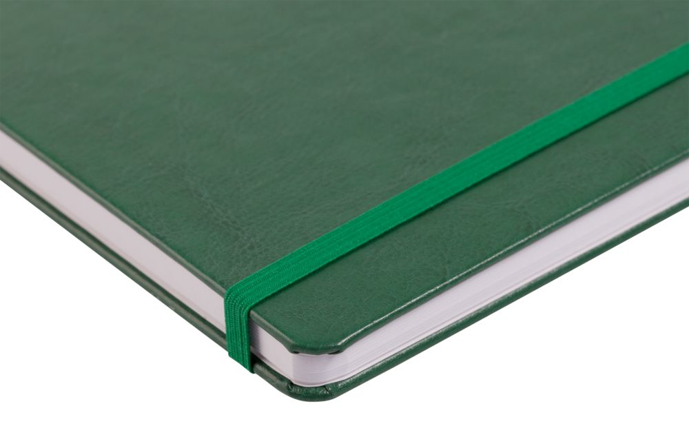 Материал: Nebraska, зеленый FF, 244 блок, количество страниц - 144, зеленая резинка, зеленое ляссе, конверт на нахзац.