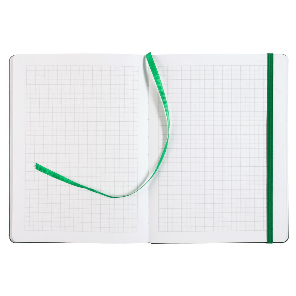 Блокнот freenote, в клетку, зеленый. Размеры 15,5х21 Вес (1 шт.) 205 г Транспортная упаковка 44,0x34,0x16,0 см Вес 8,20 кг Объем упаковки 0,024 м? Количество в упаковке 40 шт. Виды нанесения T1-Тиснение бесцветное T2-Тиснение фольгой (1 цвет) UV-УФ-печать Материал Nebraska, зеленый FF, 244 блок, количество страниц - 144, зеленая резинка, зеленое ляссе, конверт на нахзац.