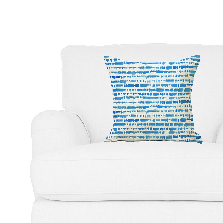 Декоративная подушка, голубая акварель, льняная наволочка, бежевая, 45х45