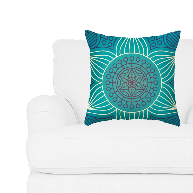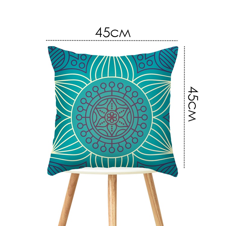 Декоративная подушка, синяя мандала, льняная наволочка, цвет синий, 45х45