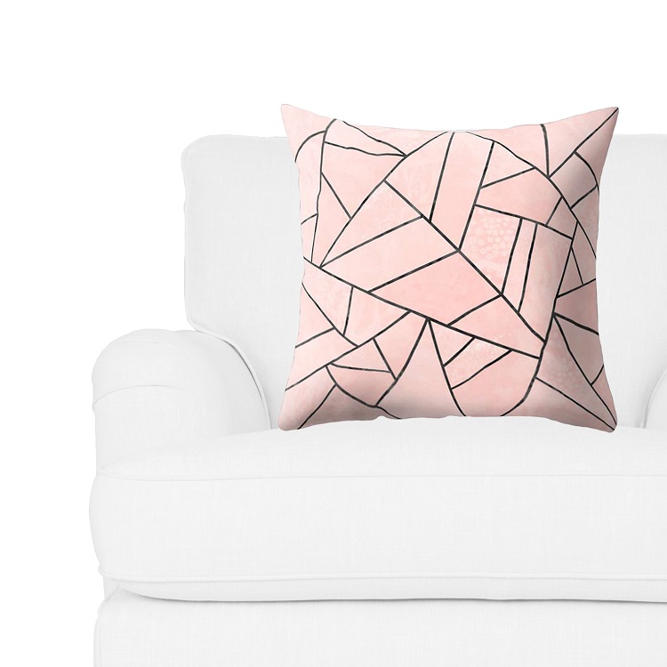 Декоративная подушка, розовые геометрические узоры, льняная наволочка, цве