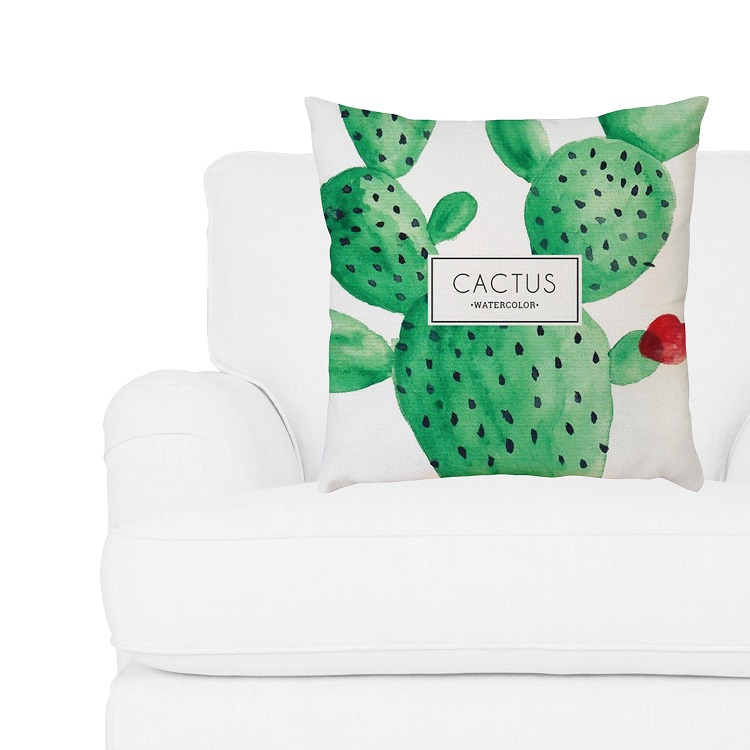 Декоративная подушка, кактус, льняная наволочка, бежевая, 45х45 см