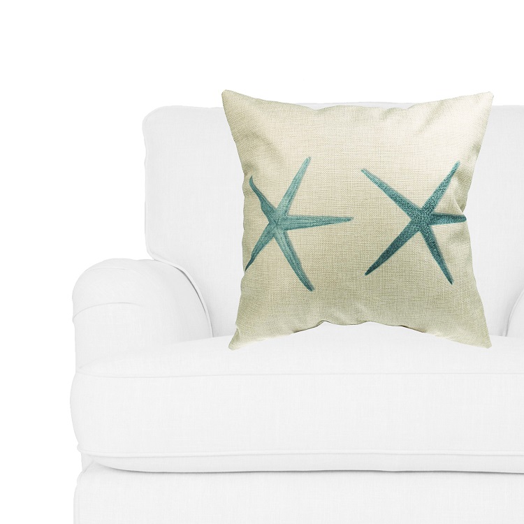 Декоративная подушка, морские звезды, наволочка из хлопка, бежевая, 45х45