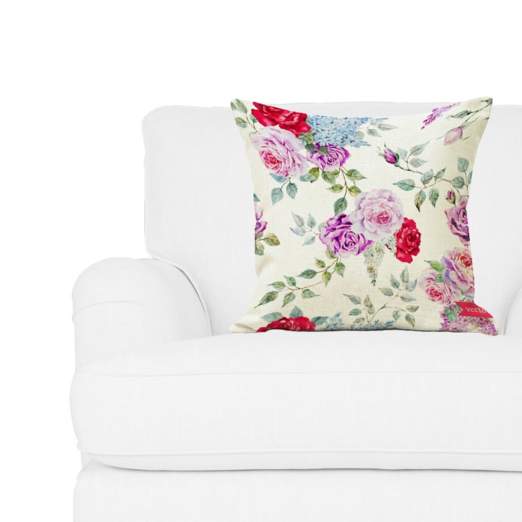 Декоративная подушка, розы, льняная наволочка, бежевая, 45х45 см