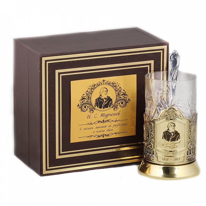 Подстаканник никель чайная классика, тургенев в шкатулке с накладкой (ци
