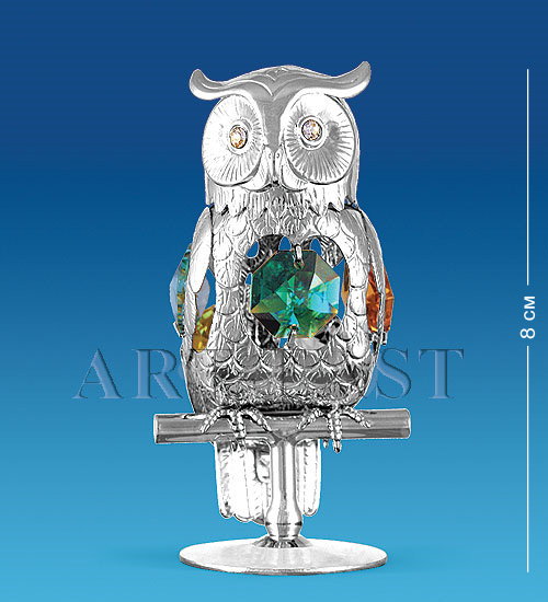 Ar-1202 фигурка серебр. сова с цв.кр. (юнион)