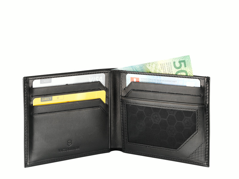 Портмоне Victorinox Zenon с защитой от сканирования Rfid, чёрное, натураль