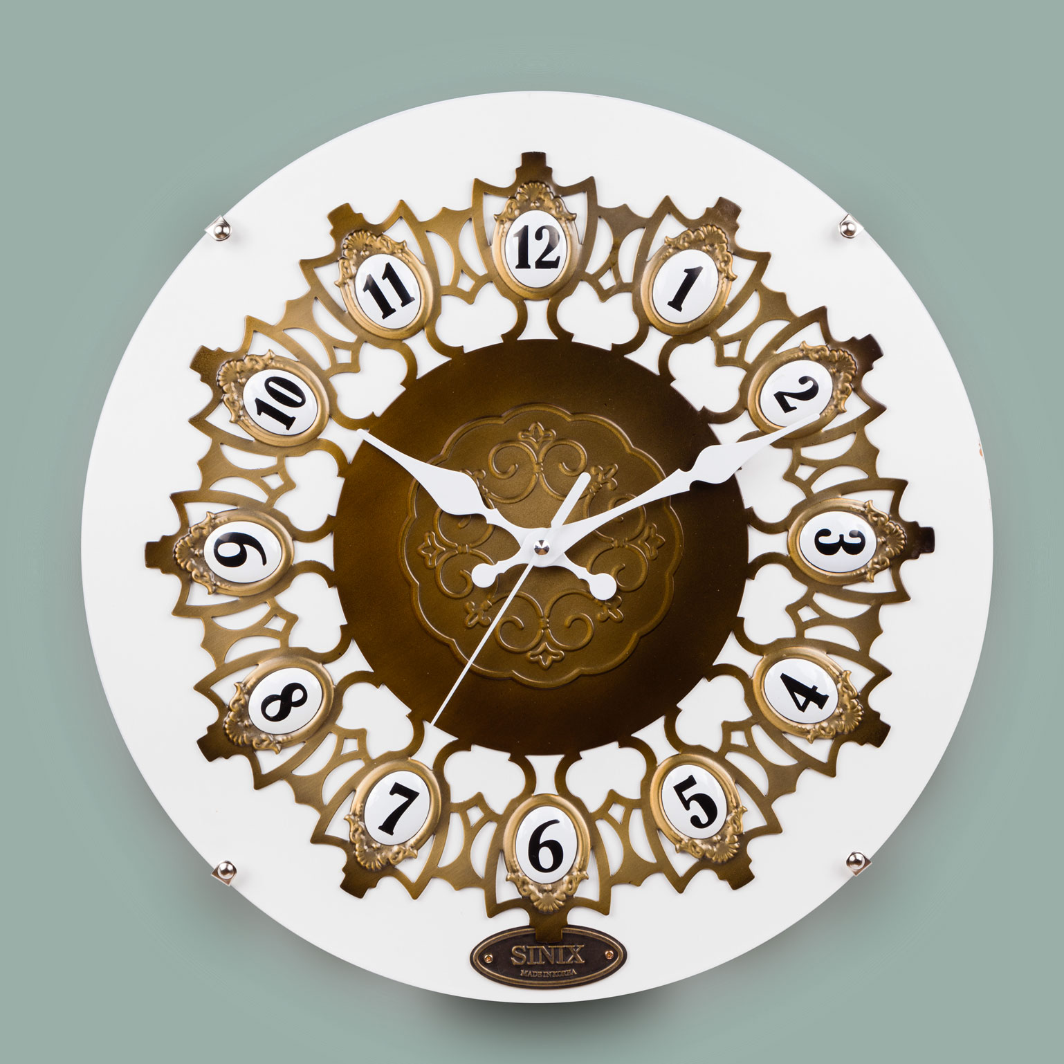 Часы настенные sinix 6020wr. Часы полностью на деревянной основе (МДФ) закрытые сверху стеклом. Сам циферблат выполнен из ажурной металической накладки. Выполнены в 4-х цветах: бежевом, белом, под дерево и темное дерево Размеры, мм 335х335х30 мм. Материал MDF Форма Круглые Механизм Плавного хода Циферблат Арабский Цвет корпуса Белый Предназначение Для дома Особенности Настенные