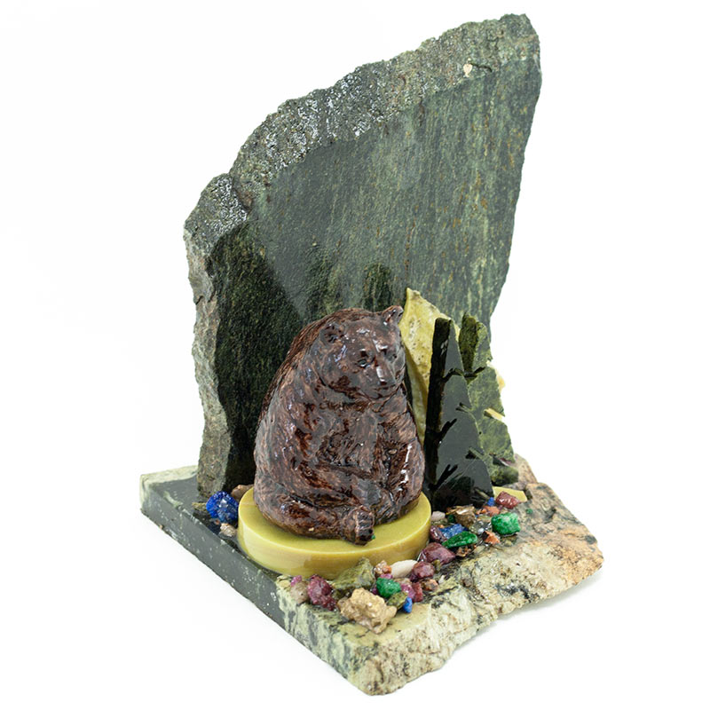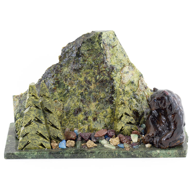 Сувенир "мишка сидящий у ёлки" змеевик
