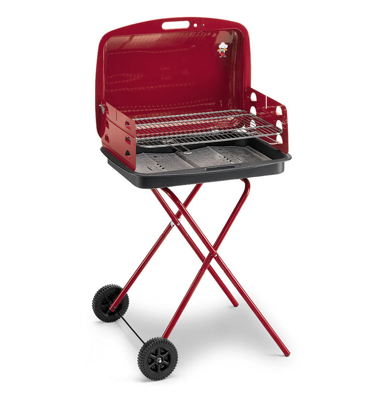606 гриль на углях чемодан bst. Гриль - это замечательное решение для отдыха на природе в кругу семьи или друзей. Благодаря ему можно приготовить замечательные вкусные блюда из мяса, рыбы, овощей на свежем воздухе с помощью углей. Дизайн в форме чемодана станет стильным дополнением на вашем дачном участке. У гриля есть четыре устойчивые ножки, которые прочно фиксируют его на месте, а также 2 колеса, которые помогут перемещать его с места на место. • Размер решетки: 40х61 см • Высота: 90 см • Материал: углеродистая сталь • Колеса: да (2 штуки)