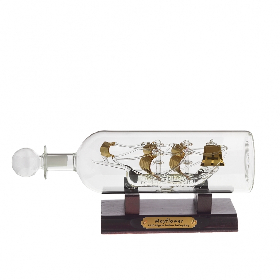 Декоративное изделие корабль в бутылке, на деревянной подста...