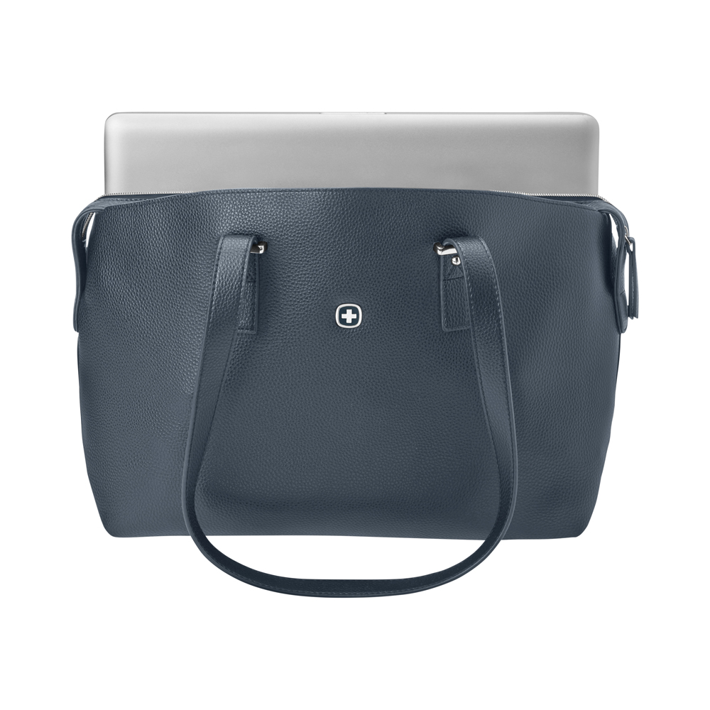 Сумка женская wenger rosaelli с карманом для ноутбука 14, синяя, полиэстер. Бренд: WENGER Описание: Сумка женская WENGER RosaElli с карманом для ноутбука 14, синяя, полиэстер, 37 x29x19 см Страна: КИТАЙ Доп. Описание: Изысканная и удобная сумка будет незаменимым помощником для деловой женщины в любой ситуации, будь это поездка на работу или на праздничный вечер. - Три отделения: мягкое отделение на молнии надежно защитит Ваш ноутбук диагональю до 14 - Внутренний карман на молнии надежно сохранит ценные вещи - Накладные карманы для облегчения доступа к телефонам и мелким предметам первой необходимости - Маленькие металлические ножки защищают дно сумки Изготовлена из мягкой, эластичной искусственной кожи с отделкой серебряного цвета, создающей легкую гламурную нотку.