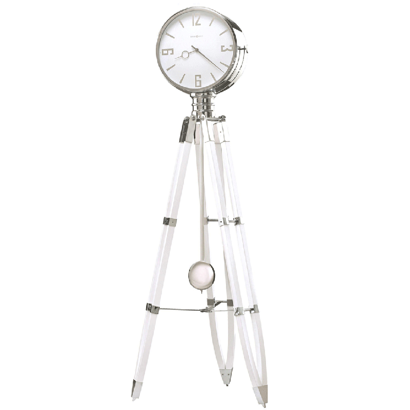 Напольные часы howard miller 615-069. Напольные часы Howard Miller 615-069 Напольные часы Howard Miller 615-069 имеет надежный кварцевый механизм. Дизайн этих напольных часов в виде треножника с циферблатом заимствован у прожекторов со съемочных площадок Голливуда эпохи ретро. Хромированный и полированный корпус богат металлическими акцентами. Корпус часов белого цвета, изготовлен из твердых пород дерева, шпонирован. Крупный, стационарный циферблат белого цвета, хромированные арабские цифры, минутная и секундная шкала, часовые стрелки, широкая хромированная и полированная оправа циферблата. Линза маятника из полированного хрома закреплена на деревянном стержне белого цвета. Кварцевый механизм Harmonic, три мелодии на выбор: Размер, см : 187х65х58 Цвет : Белый Материал : Дерево, Металл Механизм : Кварцевый Функции : Мелодия, Бой, Ночной режим СКИДКИ : Индивидуальные
