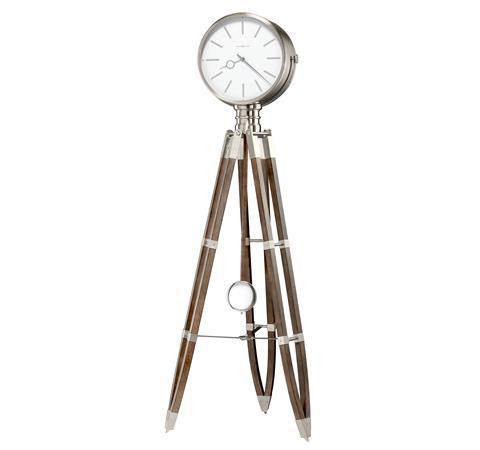 Эти напольные часы в виде треножника и круглой оправы обязаны своим дизайном Голливудской осветительной технике эпохи ретро.