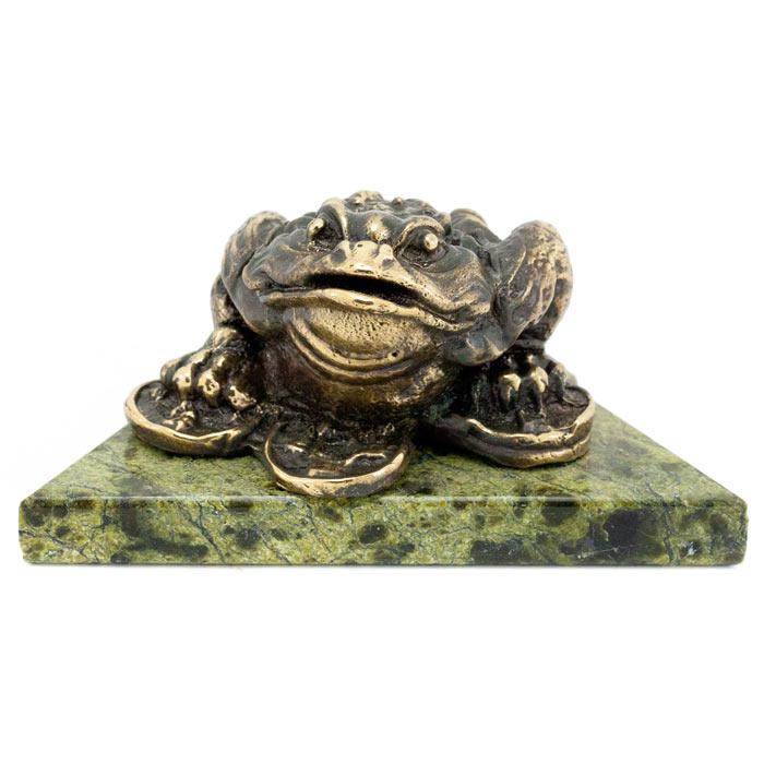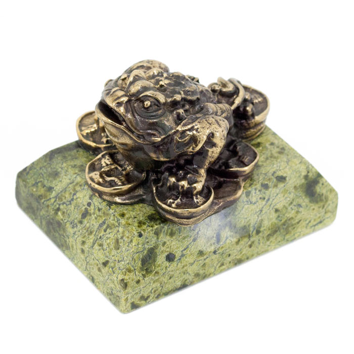 Статуэтка "жаба на деньгах" бронза змеевик