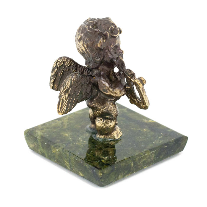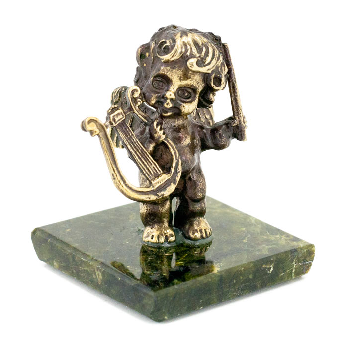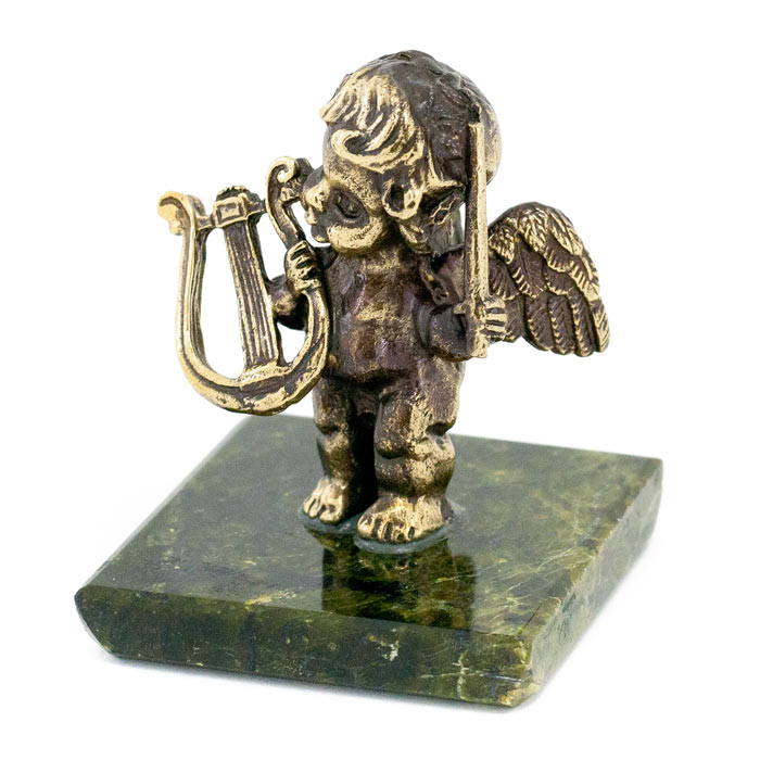 Статуэтка "ангелочек с арфой" бронза змеевик