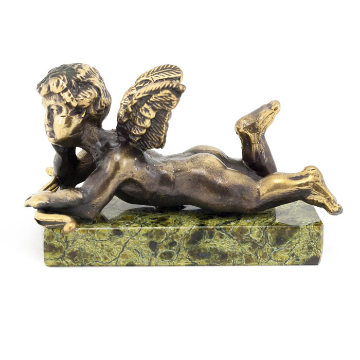 Статуэтка "ангелок" бронза змеевик