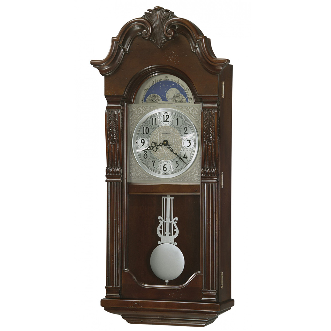 Настенные часы howard miller 625-439. Настенные часы Howard Miller 625-439 Norristown (Норристаун) Настенные часы Howard Miller 625-439 Norristown (Норристаун) имеют надежный кварцевый механизм. Настенные часы Howard Miller 625-439 были специально изготовлены к 82-летию компании. Циферблат часов украшают угловые орнаменты и центральный диск, отделанные травленым никелем. Серебристая окружность с черными арабскими цифрами, черные змеевидные стрелки часов, имитация лунного календаря. Дизайн и цветовую гамму циферблата дополняют линза и лира маятника, покрытая матовым никелем. Корпус часов украшают колонны с резьбой в верхней части и декоративный резной фронтон. Требуется 2 батарейки типа С (не включены в поставку). Кварцевый механизм с улучшенным звучанием, ( Размер, см : 15х33х74 Цвет : Деревенская вишня Материал : Дерево Механизм : Кварцевый Функции : Мелодия, Бой, Ночной режим