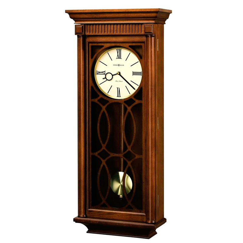 Кварцевые настенные часы 625-525 kathryn (катрин). Кварцевые настенные часы Howard Miller 625-525 Kathryn (Катрин). Кварцевые настенные часы Howard Miller 625-525 Kathryn (Катрин) с боем имеют надежный кварцевый механизм. Деревянные настенные часы с плоским фронтоном украшают точеные колонны, декоративный молдинг в верхней части корпуса и уникальная резная фигурная решетка поверх стекла дверцы. Маятник отделан матовой латунью и закреплён на деревянном стержне. Циферблат молочного цвета с чёрными римскими цифрами. На циферблате выполнена специальная гравировка