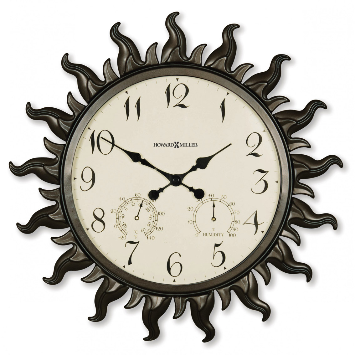 Эти настенные часы диаметром 57,15 см в виде солнца предназначены для использования в помещении или на улице.