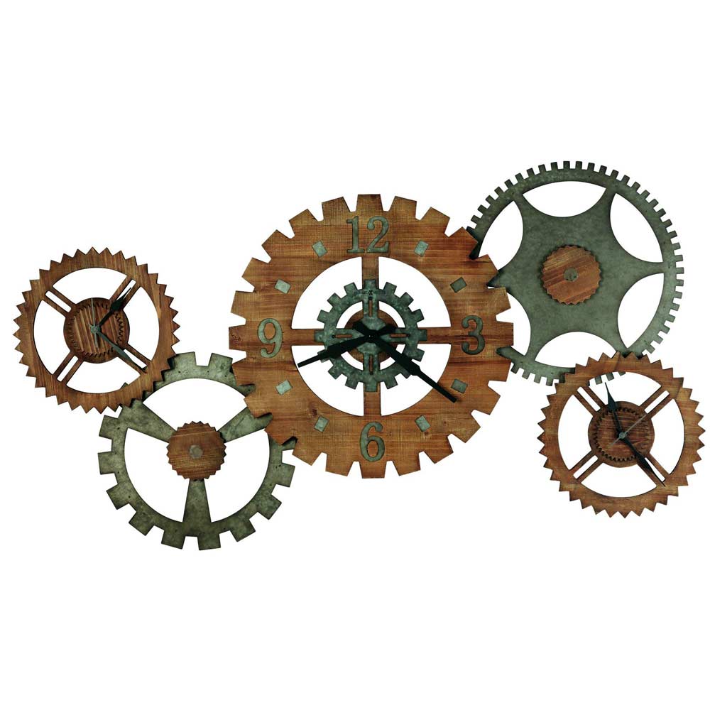 Настенные часы howard miller 625-727. Настенные часы Howard Miller 625-727 Настенные часы Howard Miller 625-727 имеют надежный кварцевый механизм. Корпус данной модели состоит из пяти декоративных шестерней, три, из которых, являются циферблатами. Огромная ширина этих часов не останется незаметной в любом помещении. Сочетание состаренной гальванизированной стали и дерева сочетается с, практически, любой мебелью и способно привнести абсолютно новые акценты в Ваше помещение. Центральная шестерня украшена арабскими металлическими цифрами и индексами. Циферблаты, расположенные по краям корпуса, можно использовать для отображения времени в других часовых поясах. Для работы часов необходимо 3 элемента питания типа АА (R6). Размер, см : 68x124x6 Материал : Дерево Механизм : Кварцевый