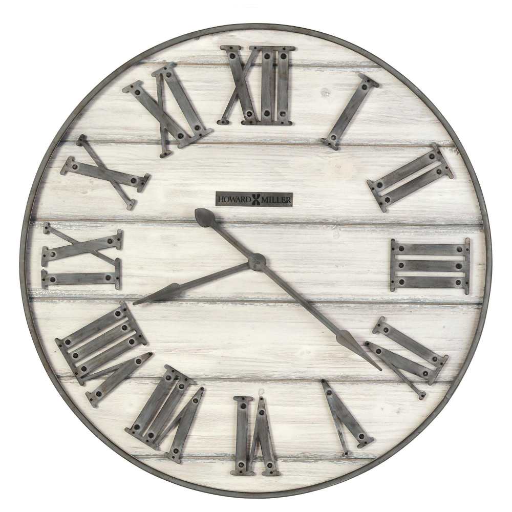 Настенные часы из металла howard miller 625-743. Настенные часы из металла Howard Miller 625-743 Настенные часы из металла Howard Miller 625-743 имеют надежный кварцевый механизм. Расширьте визуальное пространство Вашей гостиной при помощи этой большой модели настенных часов от Howard Miller. Для классической внешнего вида мы установили на циферблат крупную римскую оцифровку. Отделка под старину превращает эти часы в подобие древнего артефакта, а нейтральная выбеленная отделка позволяет данной модели прекрасно вписаться в любой интерьер. Поверхность циферблата покрыта шпоном, что увеличивает долговечность, а имитация щелей между досками и придает изящную грубость внешнему виду. Грубая металлическая рама выполнена в сером цвете с эффектом старения, в том же стиле выполнены римские цифры и стрелки. Кварцевый механизм. Требуется 1 батарейка типа АА (не включена в поставку) Размер: диаметр 93 см. Размер, см : 93 Цвет : Белый Материал : Металл Механизм : Кварцевый СКИДКИ : Индивидульные