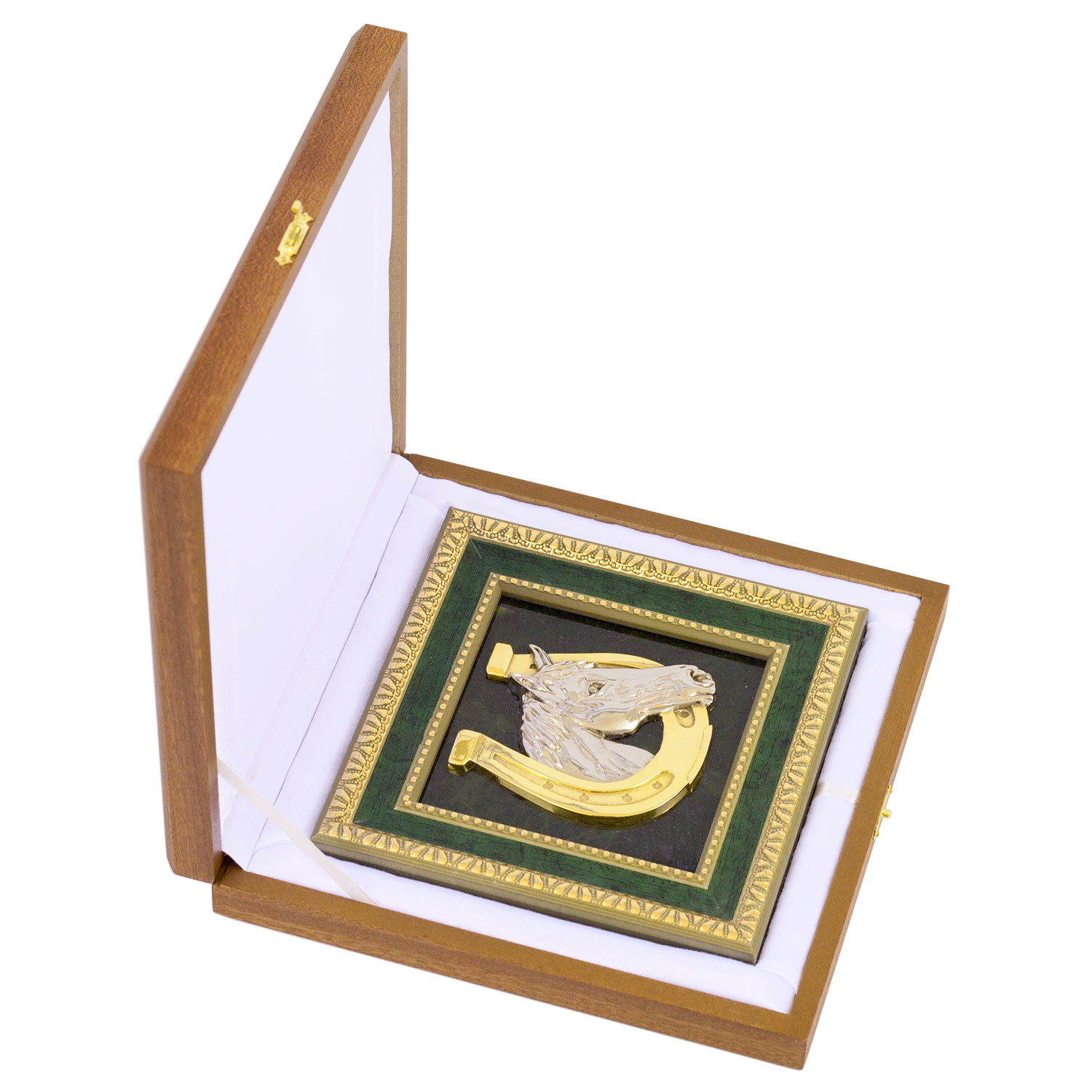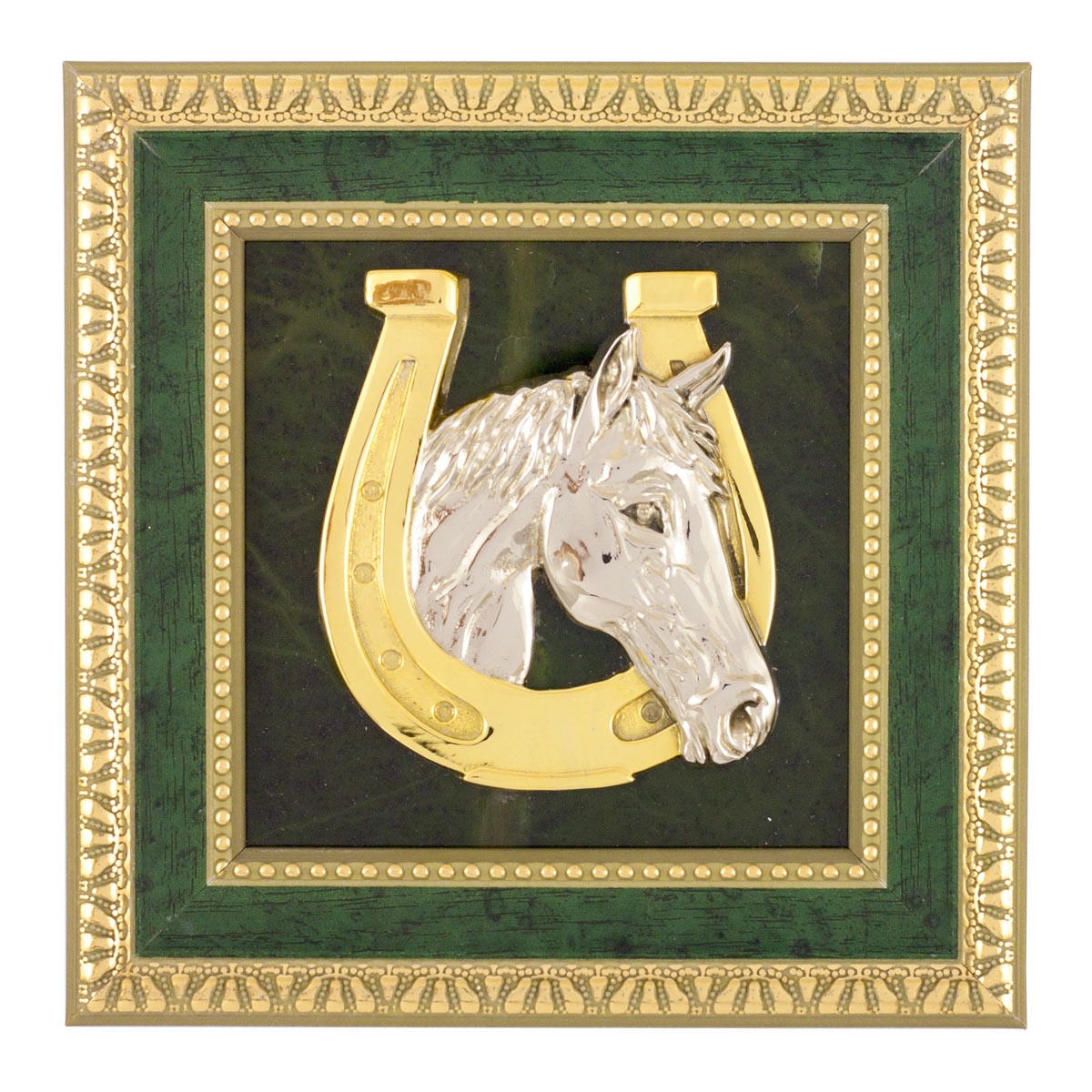 Панно "подкова с лошадью" камень нефрит. Вес 920 г Размер 16х16х2 см Материал нефрит, бронза, багет, никель, покрытие золотом (999,9). Месторождение Миасское, Челябинская область, Россия  развернуть описание ▼