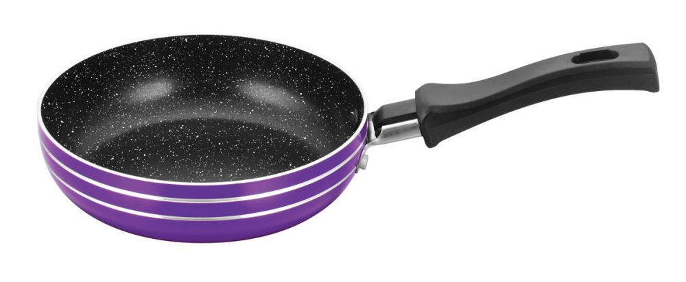 Материал: штампованный алюминий. Антипригарное покрытие non-stick под мрамор. Ручка из бакелита. Индукционное дно. Подходит для всех видов плит. Размер: 18*3,8 см. Цвет: сиреневый.