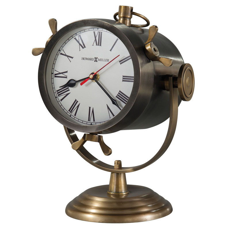 Каминные настольные часы howard miller 635-193. Настольные часы Howard Miller 635-193 Vernazza (Вернацца) Настольные часы Howard Miller 635-193 Vernazza (Вернацца) имеют надежный кварцевый механизм. Эти оригинальные каминные часы стилизованы под старинный прожектор. Никелированный корпус с латунными деталями. Корпус можно регулировать в вертикальной плоскости. Белый циферблат с римскими цифрами, черными часовой и минутной стрелками и красной секундной стрелкой закрыт стеклом. Фетровая накладка в основании защитит поверхность стола. Для работы механизма требуется 1 батарейка типа АА (не включена в поставку) Характеристики настольных часов Howard Miller 635-193 Vernazza (Вернацца) Механизм: кварцевый. Корпус: металл. Размер: 29x21x17 см. Производитель (страна): Howard Miller (США). Размер, см : 29x21x17 Материал : Металл Механизм : Кварцевый СКИДКИ : Индивидуальные
