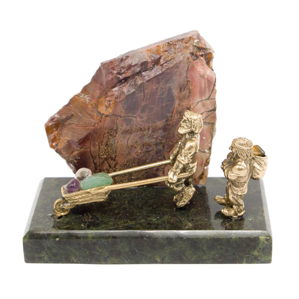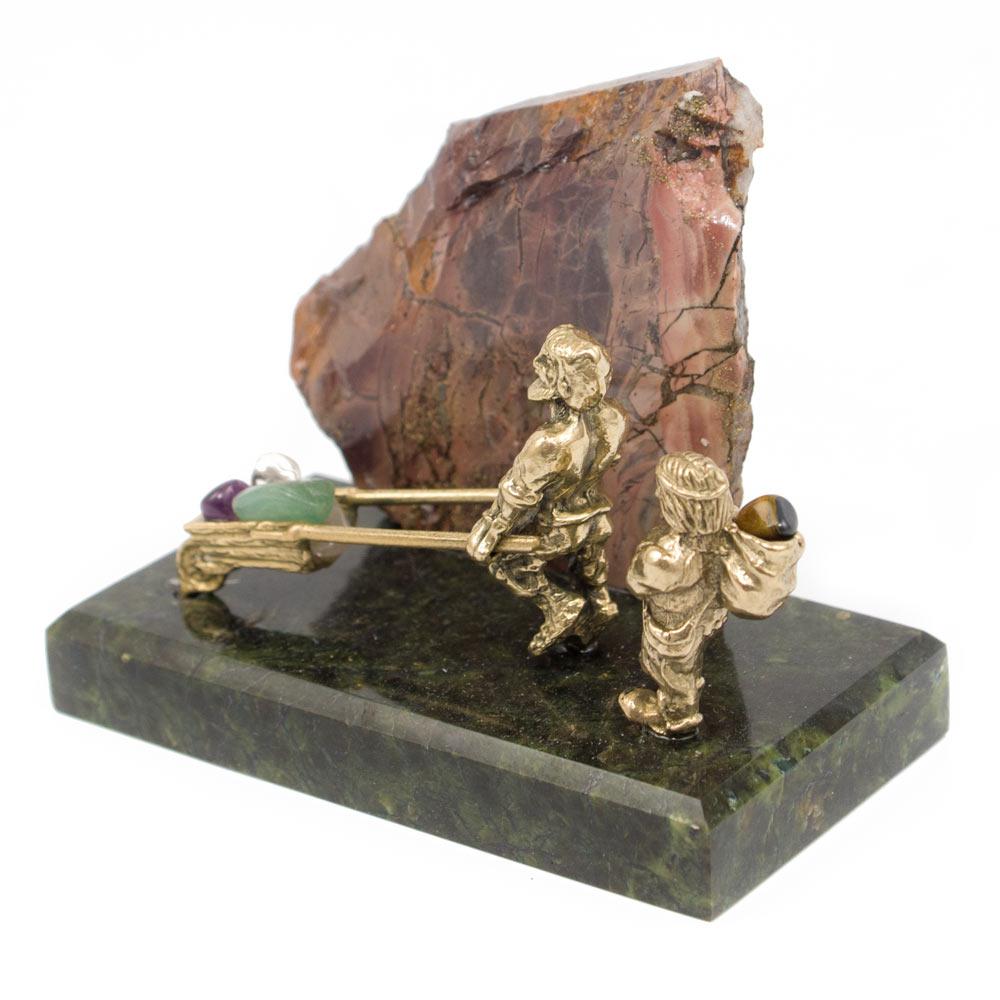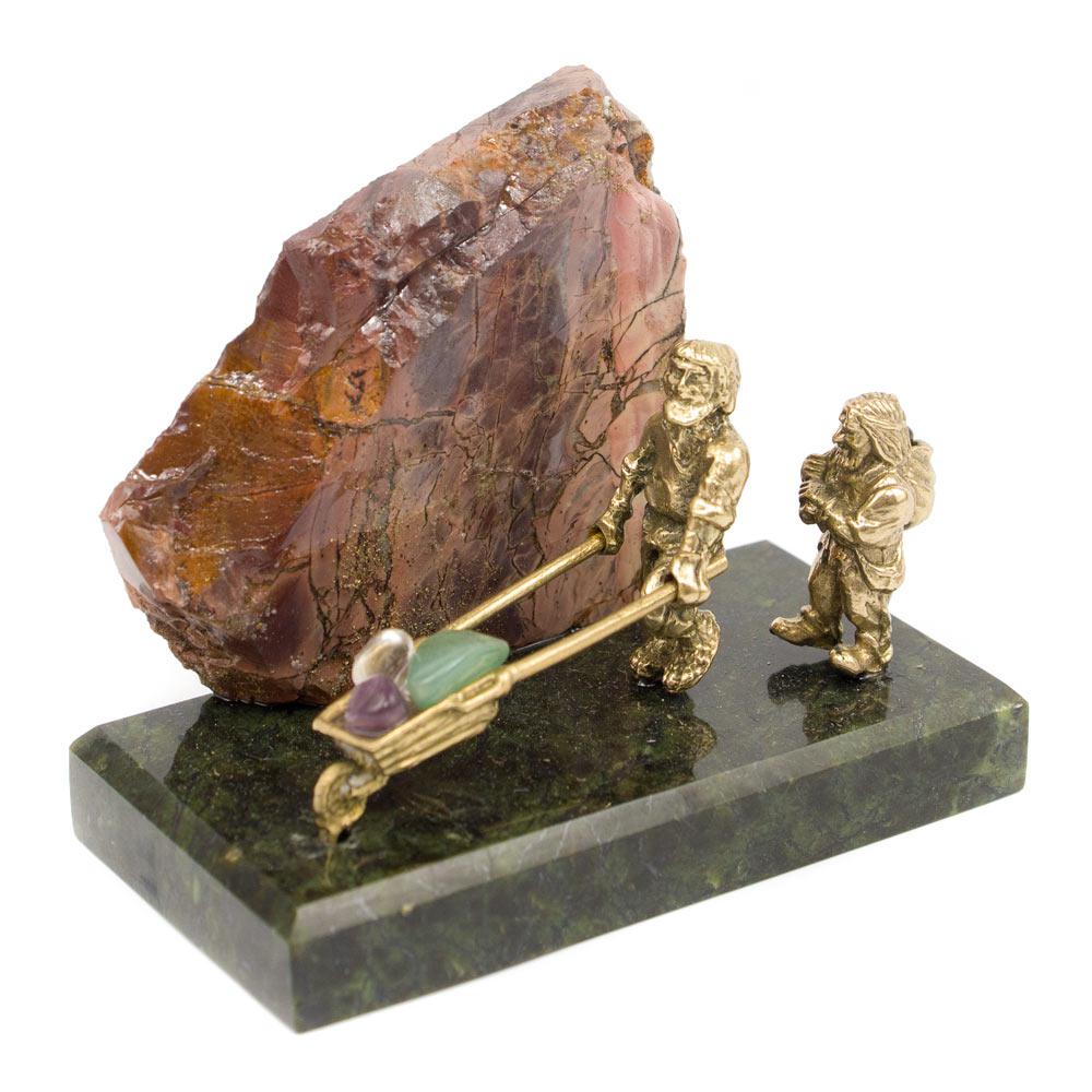 Сувенир "старатели" бронза змеевик яшма 100х50х70 мм