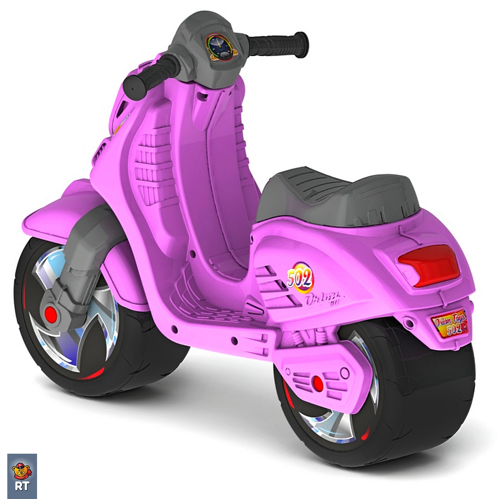 Ор502 каталка-мотоцикл беговел скутер цвет розовый. Необыкновенно красивый новый беговел в виде стильного мотороллера, который как две капли воды похож на итальянcкий мотороллер Vespa. Культовый мотороллер производится в Италии с 1946 года и переводится с итальянского - Оса. Уже более полувека он является самым успешным скутером в мире. Верим, что и наша маленькая копия Vespa завоюет любовь малышей. Cтильный беговел- каталка не только очень красив, но и очень эргономичен. Пожалуй, не было более удобного и продуманного беговела раньше. Удобная рама: за счет того, что она низкая, малышу любого роста будет удобно садиться на беговел и быстро спрыгивать с него. За счет широкой рамы и широких колес, беговел очень устойчивый и безопасный. Также имеются щирокие подножки, на которые, развив скорость можно поставить ноги. 2 широких устойчивых колеса имеют безопасный угол поворота и Ваш малыш никогда не перевернется на беговеле. Очень широкое сиденье с углублением для большей эргономики имеет небольшой бортик сзади сиденья. Сидя на удобном сиденье, малыш будет с легкостью доставать до руля и без усилий управлять беговелом. Самое главное в этом беговеле- эргономика форм и размеров. Беговел идеально подойдет детям от 18 месяцев. Они будут пользоваться им и получать удовольствие от удобства. Если малыш никогда не катался на подобном транспорте, скутер mini Vespa он освоит очень быстро. Он почувствует как удобно и легко управлять этим беговелом, оценит устойчивость мотороллера, а истинный итальянский дизайн покорит его в первого взгляда. Все продумано до мелочей. Каталка очень прочная и надежная. Польза беговела для детей от 18 месяцев неоценима. Это первый транспорт, заменяющий 3-х колесный и 2-х колесный велосипед с боковыми поддерживающими колесами. Это обучающий беговел- велобалансир. Любой малыш хочет научиться кататься на 2-х колесном велосипеде. Но не у всех это получается сразу - крутить педали и держать равновесие одновременно может не каждый ребенок. Поэтому знатоки особенностей детского организма создают такие беговелы, с помощью которых легче учиться удерживать равновесие и сохранять баланс. На этой каталке ребенок быстрее и легче сможет понять как балансировать и сохранять равновесие. Он увидит, что ноги могут качаться свободно, но они готовы помешать падению. Ребенок быстро поймет, как управлять своим телом, а это позволит ему мыслить, самостоятельно принимать решения и развиваться. Этот беговел- незаменимый помощник в развитии малыша. Ребенок развивается физически и укрепляет здоровье, он может ехать в дальние поездки и не уставать, преодолевать препятствия и не бояться упасть. Очень устойчивые, широкие и проходимые колеса легко справятся с любым покрытием дорог. Дождь, вода и грязь будут быстро и легко скатываться по боковым канавкам колес и колеса всегда будут оставаться сухими. А широкий корпус с крыльями защитит от грязи и брызг. Столкновения с преградами малышу не страшны- он как в настоящем мотобайке защищен от ударов продуманной формой корпуса. Очень удобные ручки на руле с уплотненными и расширенными окончаниями рукояток. Если малыш упадет на бок, то рука будет в безопасности- удар придется на окончание рукоятки руля. Выполнен по самым современным технологиям и соответствует всем высочайшим стандартам качества и безопасности.
