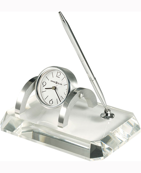 Prominence Desk Set. Настольный набор: часы и ручка на стеклянной основе. Задняя часть часов представляет собой рамку для фото.