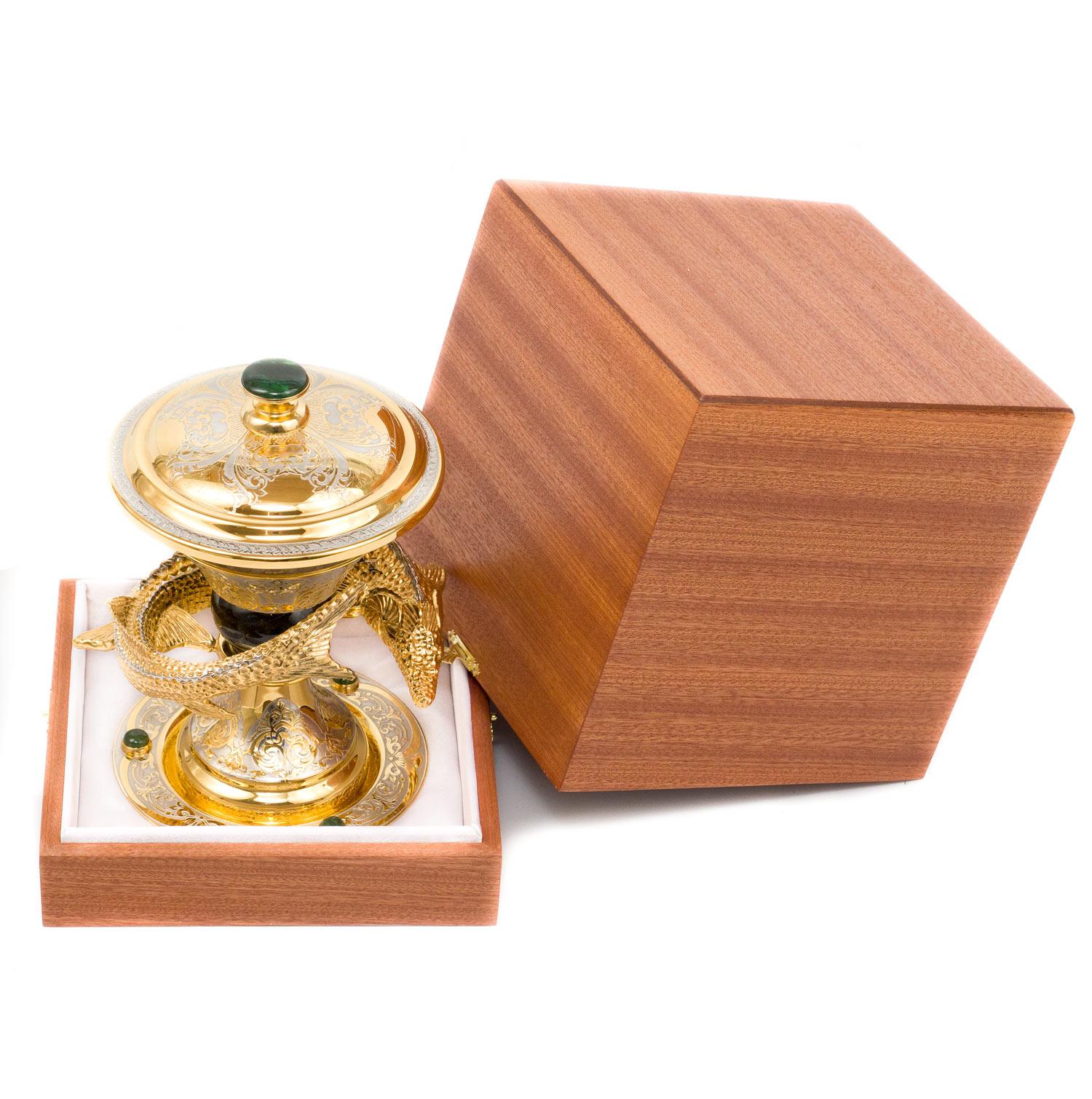 Материал малахит, хрусталь, латунь, никель, покрытие золотом (999,9).