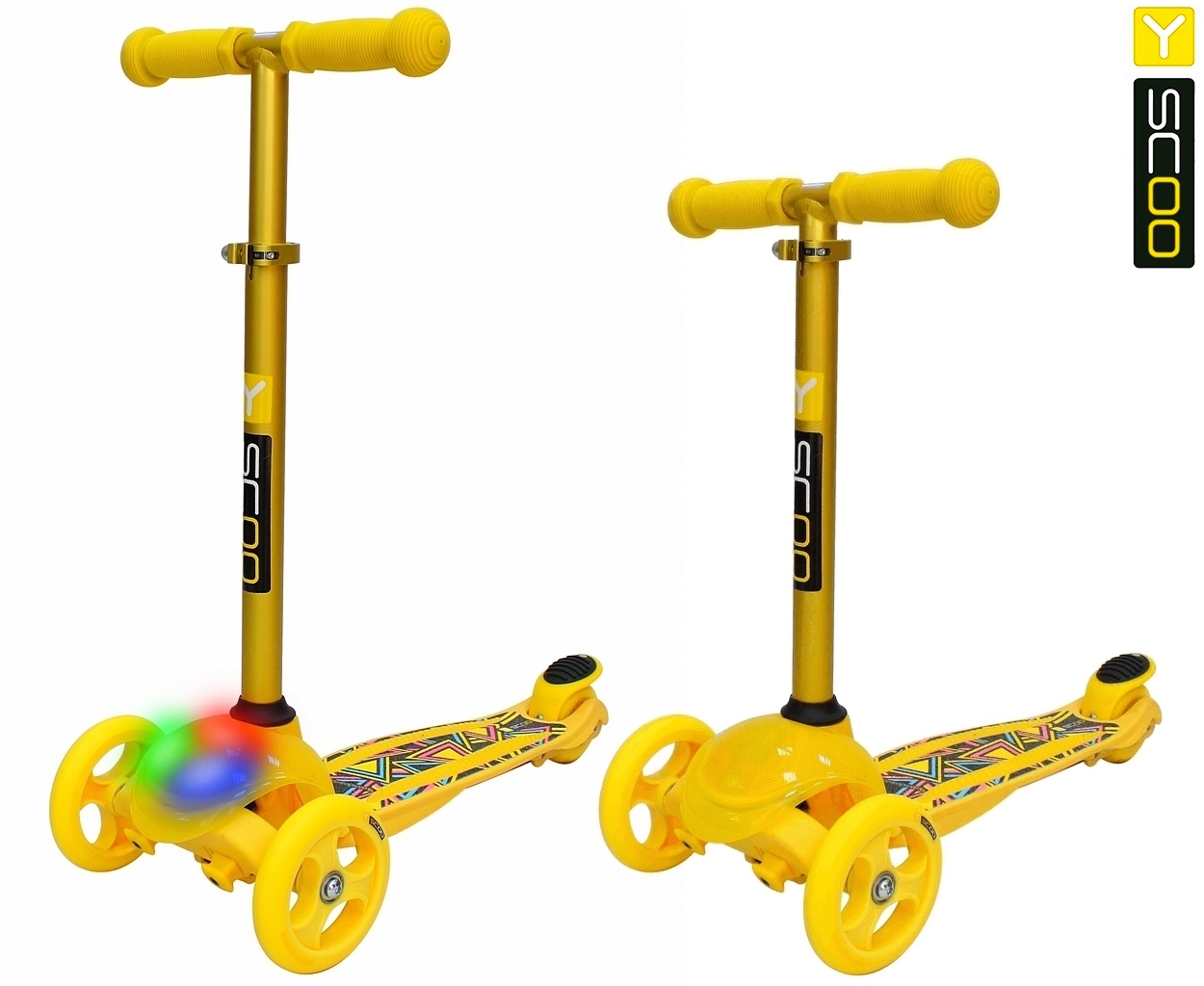 Самокат трехколесный y-scoo rt trio diamond 120 kaleidoscope светящаяся пл. В нашей ювелирной коллекции новый бриллиант- самокат со светящейся платформой и блокировкой колес Y-SCOO Diamond Kaleidoscope . Наши инженеры словно ювелиры трудились над каждой деталью и создали шедевр. Полюбуйтесь результатом! Этот самокат переливается разноцветными огоньками словно бриллиант играет на солнце лучами. Платформа с разноцветными лампочками внутри. Кроме красоты эта функция несет безопасность- в темное время суток Ваш малыш не потеряется- Вы издалека сможете наблюдать за ним. Новая платформа с рифлеными антискользящими накладками создана по новейшей технологии гибкого и прочного стекловолокна. Полоски по обеим сторонам платформы не дадут ножке малыша соскользнуть с платформы. Безопасность- 10 баллов. Легкая пластиковая платформа из термопластичного полипропилена, армированная стекловолокном для прочности. Мы также тщательно продумали форму платформы, на которой ноги малыша не будут уставать. Мы укрепили платформу тонкой и прочной стальной пластиной. Теперь малыш может прыгать на самокате –он выдержит любую нагрузку. Каждый раз мы совершенствуем технологии и материалы. В этой модели мы удивляем Вас супермягкими силиконовыми ручками на руле самоката. Это новые материалы и новейшая технология DIAMOND 120. Y-SCOO - бренд , постоянно доказывающий свою уникальность, готов удивлять Вас снова и снова. . ВПЕРВЫЕ и только у самокатов Y-SCOO : международный патент- уникальная система блокировки передних колес LOCK/BLOCK. Очень простая и надежная система блокирования передних колес самоката путем перемещения квадратных фиксаторов в пазы. Система расположена между передними колесами, под передней панелью внизу самоката. Поочередно поднимая квадратный пластиковый фиксатор, переставляйте его в пазы и выбирайте положение блокировки. 3 положения: колеса заблокированы, колеса заблокированы наполовину и имеют небольшой ход, колеса не заблокированы и имеют свободный ход. Когда колеса заблокированы и фиксаторы стоят в центре (ближе к друг другу), руль не наклоняется вправо/влево и самокат может ехать только прямо. Это придумано для малышей, которые только начали обучение катанию на самокате и случайно могут завалиться набок. С системой блокировки безопасность- 10 баллов. Когда фиксаторы передвинуты и стоят на середине, руль имеет небольшой ход и наклоняя самокат, малыш немного может поворачивать вправо или влево. Это положение можно выбрать, когда малыш немного освоил катание вперед и уже уверенно себя чувствует на самокате. Когда фиксаторы передвинуты и стоят по краям (дальше друг от друга), руль имеет свободный ход и управлять самокатом можно в полной мере. Главное, контролировать малыша, когда он наклоняет руль и поворачивает самокат. С системой LOCK/BLOCK обучение катанию на самокате будет безопасным и очень быстрым. Вы и Ваш малыш оцените наши новые наклейки, которые никогда не отклеются, потому что созданы по технологии Water sticker. Это переводные картинки из нашего далекого детства, но созданные по современным технологиям. Вы по достоинству оцените это высокое качество. Уникальность этой модели- в заднем колесе. Колесо- широкое, устойчивое и мягкое. Не подвержено стиранию и деформации. Благодаря широкому заднему колесу , самокат очень устойчив. А устойчивость самоката придаст малышу д