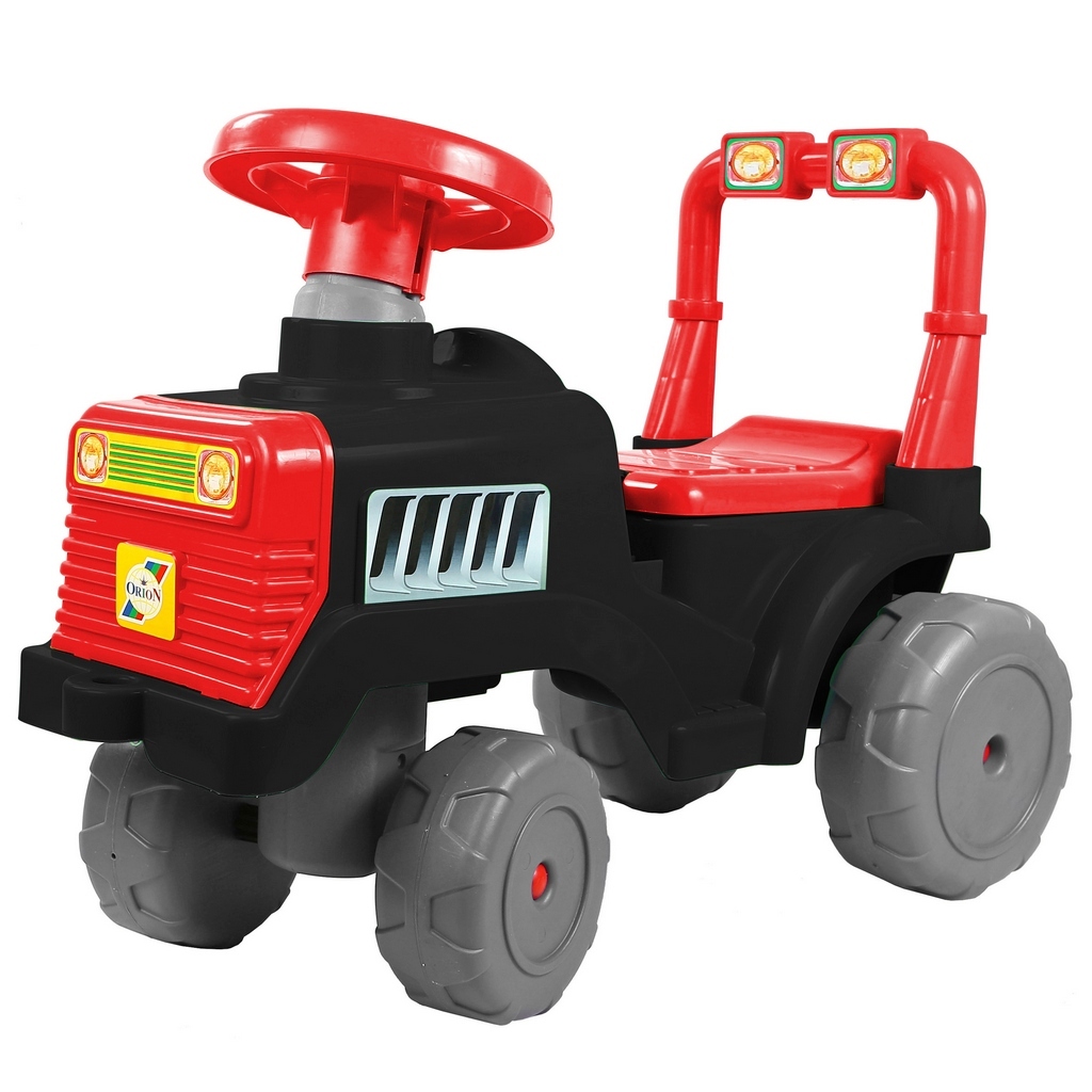 Ор931к каталка трактор в черно-красный. Мы давно позаботились о детях от 3 лет и предложили им прекрасные трактора разных моделей. Но как обидно было их маленьким братикам и сестричкам- у них не было тракторов. Мы исправляем свою ошибку и предлагаем детям от 10 месяцев прекрасный Baby Трактор B. Это прекрасное транспортное средство очарует Вашего малыша с первого взгляда. А когда он поймет это полезные свойства, он не расстанется с ним до тех пор, пока не вырастет. Трактор-каталку можно использовать как ходунки и как машинку-каталку. 1. Ходунки для детей от 10 месяцев. Благодаря специальной ручке за сиденьем каталки, ребенок может опираться на машинку и делать свои первые шаги. Также эту удобную ручку может использовать взрослый для переноса каталки. 2. Трактор-каталка для детей от 12 месяцев. Благодаря небольшим выступам-подножкам по бокам трактора , Вы сможете катить малыша. Он будет сидеть за рулем машинки, держаться за руль, а ножки сможет поставить на боковые подножки. Но малышам еще не хватает сил толкаться ногами и ехать, поэтому Вы можете привязать веревку за специальное отверстие впереди трактора и возить малыша за веревку. Вы сможете катить машинку с ребенком, ножки которого будут безопасно отдыхать на боковых подножках. 3. Трактор-каталка для самостоятельного использования малышами от 12 месяцев. Благодаря высокой спинке, ребенку будет очень комфортно на этом тракторе. Эта каталка идеально подходит для катания дома, на детских площадках, во дворах и парках. Сначала трактор-каталку можно использовать для катания малыша по дому, а когда Ваш малыш подрастет, Вы можете смело использовать её для прогулок на улице. Для комфортной прогулки предусмотрены боковые подножки и удобная спинка сидения. Когда малышу всего полгода, каталка используется как ходунки, которая хорошо подойдёт для обучения первым шагам. А немного повзрослев ребёнок сможет ездить в машине-каталке без родительской помощи. Но и это ещё не всё. Под сиденьем каталки имеется багажное отделение, в которое Ваш ребёнок может сложить свои любимые игрушки. Они понадобятся ему в путешествии. Большие широкие колеса c глубоким протектором позволяют трактору передвигаться по любой поверхности дороги– асфальту, лужам, грунту, камням, песку и траве. У трактора – 4 колеса :2 больших задних и 2 передних поменьше. Широкое и высокое сиденье со спинкой придают этому трактору особую значимость. Руль легко поворачивается, что обеспечивает простоту в управлении, оснащен клаксоном. Трактор- каталка способна развить у Вашего малыша пространственное и зрительное восприятие окружающего мира, любознательность, внимание. Такой вид транспорта положительно влияет на физическое развитие Вашего малыша. Машинки-каталки-трансформеры всегда были любимы и детьми, и взрослыми. Этот маленький трактор как серьезная техника, с помощью которой Ваш ребенок может играть и чувствовать себя взрослым и важным работником. А на работу он может пока устроится к своим родителям. Это замечательный шанс помочь вам во дворе дома или на даче. Давайте задания своим детям и Вы будете приятно удивлены с какой ответственностью они подходят к выполнению домашних обязанностей. Ваш ребенок будет горд своим транспортом, а Вы будете гордиться своим помощником. Все детали выполнены из качественной пластмассы. Идеальный 