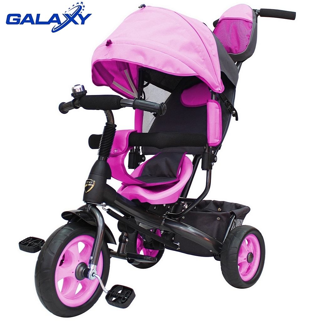 3-х колесный велосипед galaxy лучик vivat розовый. Новинка сезона ! Модель, не уступающая китайским аналогам и смело превосходящая их, потому что сделана в основном из европейских материалов. Но при этом- идеальное сочетание цены и качества, где качество намного выше чем цена. А все потому, что этот велосипед сделан в России. Новая форма рамы, усиленные и прочные соединения с задними колесами. 3-х колесный велосипед с Родительской ручкой управления на мягких полиуретановых колесах для детей от 10 месяцев. Уникальность велосипеда - в его легком весе : 8 кг. Велосипед изготовлен из материалов отечественного и европейского производства, без применения дешёвых импортных аналогов. Рама и элементы управления сделаны из стали, что придает большую надежность и больший срок службы при невысокой стоимости. Облегченная металлическая рама покрыта красивой перламутровой краской. Родительская ручка управления- усиленная и прочная. Удобная Родительская ручка установлена под идеальным углом и подходит под любой рост взрослого- Вы оцените эргономику. Благодаря системе управления велосипед очень маневренный и легкий в управлении. Как прогулочная коляска, только легче. Большие проходимые колеса из мягкого полиуретана едут бесшумно и готовы покорить любые дороги. Съемный чехол для сиденья с мягким подголовником для малышей. Складной капюшон защитит от дождя и солнца. Благодаря складному защитному капюшону как у коляски, малыш будет чувствовать себя очень комфортно внутри велосипеда. На капюшоне есть сетчатое окошко , через которое Вы сможете наблюдать за малышом. Дополнительную безопасность придает твердый барьер, сверху покрытый мягкой пористой тканью. И он удержит Вашего непоседу. Барьер безопасности поднимается и опускается вручную. Его форма и мягкость обеспечивает надежную безопасность в поездке. Удобная складная подножка незаменима для малышей в поездке. Сиденье передвигается ближе/дальше к рулю. На спинке сиденья - удобная ручка для переноски велосипеда. Убрав капюшон , ручку, Вы удивите малыша невесомым простым 3-х колесным велосипедом, которым малыш сможет управлять самостоятельно и ехать в дальние путешествия. Ткань на сиденье и капюшоне- непромокаемая, с тефлоновой пропиткой, которая позволяет легко и просто ухаживать за велосипедом, протирая ткань после дождя. Сзади- прочная багажная корзинка. На руле- мягкая защита, звонок. А на Родительской ручке- яркий рюкзак для вещей. Фирменные эргономичные прорезиненные ручки на руле- с логотипом Galaxy. Переднее колесо 10 дюймов. Задние - 8 дюймов. Максимальная нагрузка 50 кг. Оцените отечественное качество, поддержите российского производителя! Рекомендуется для детей от 10 месяцев. . Прочие Торговая Марка GALAXY ШтрихКод 2000000010175 Базовая единица шт Размер (см) длина 111 см, ширина 50 см, высота род. ручки 98/101 см, от пола до сиденья 33 см, до руля 55 см Артикул 00000006576 Вес (кг) 8 Размеры в упаковке (см) 70х26, 5х43 Вес в упаковке (кг) 9 Объем в упаковке 0. 07 Артикул2 Galaxy Лучик VIVAT розовый Бренд GALAXY