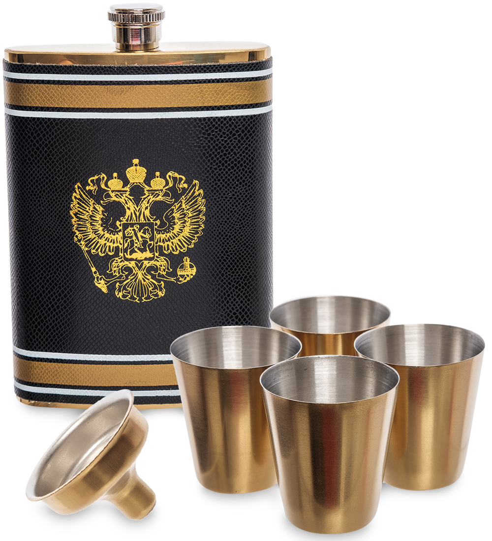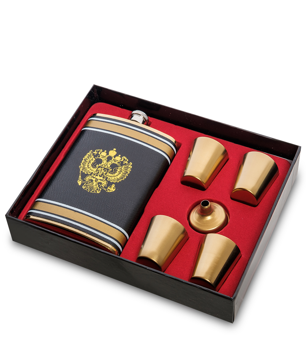 Gt-76 подарочный набор фляжка 200 мл со стопками герб