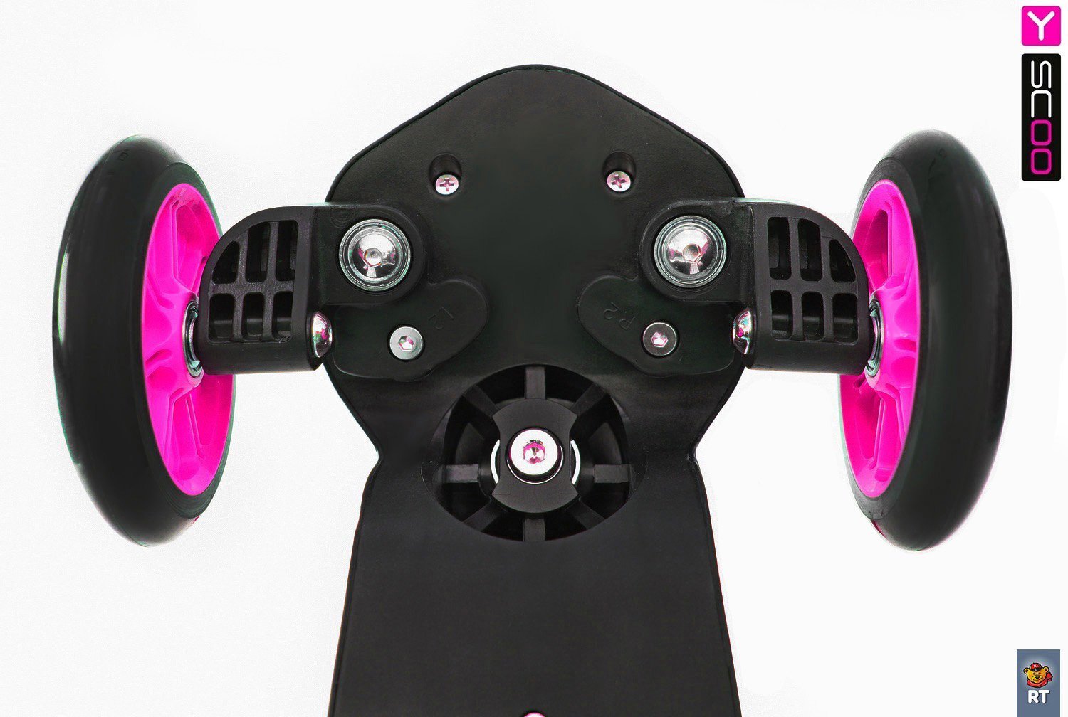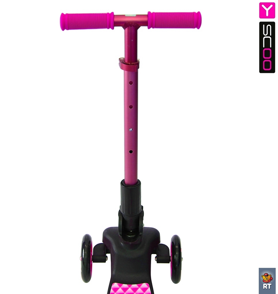 Самокат трехколесный y-scoo trio maxi 120 pink. Мы постоянно ведем непрерывный поиск идей и совершенствуем свои изобретения! Мы прислушиваемся к советам родителей и профессионалов. Рады представить Вам новую модель TRIO 120 MAXI. Это любимый всеми складной самокат TRIO 120, но с высоким рулем и 4-мя положениями высоты руля. Как часто мы слышим, что родители хотят выбрать самокат для своего малыша на более длительный период, так сказать на вырост. Мы прислушались к просьбам родителей и представляем TRIO 120 MAXI. Лидер продаж среди самокатов модель TRIO 120 стала доступной и для детей повыше ростом, и для любителей вещей на вырост. Ручка стала выше и теперь ее можно менять на 4 разные высоты. Оцените достоинство новой модели TRIO 120 MAXI. Y-SCOO -бренд, доказавший способность выполнить любое пожелание самых требовательных и искушенных покупателей. Надеемся мы не подвели Вас и в этом раз. Самокаты Y-SCOO доказали, что они ЛУЧШИЕ самокаты для детей по качеству и своим характеристикам. Уникальная система складывания TRIO 120 MAXI имеет международный патент. Очень простая и надежная система складывания самоката путем перемещения ручки из вертикального паза в горизонтальный. Вам необходимо легким нажатием вытянуть ручку из вертикального паза, сложить и зафиксировать в горизонтальном пазе, закручивая или раскручивая пластиковый хомут на руле. Другая уникальность этого самоката- 5 высокоточных подшипников ABEC 5: 2 подшипника- на передних колесах, 2 подшипника- на системе поворота руля, 1 подшипник- на заднем колесе. Идеальная находка инженеров . Наличие такого большого количества 5 подшипников делает этот самокат невероятно маневренным и легкоуправляемым. Аналогов Вы не найдете! Мы продумали детали специально для того, чтобы Ваш малыш быстро и без проблем освоил самокат Y-SCOO. И также быстро мог управлять им на любых дорогах. Y-SCOO TRIO 120 MAXI - очень устойчив и идеально подходит для детей от 2 лет. На нем научится кататься любой малыш. Очень красивый дизайн и идеальное качество. Алюминиевая ручка- телескопик меняется по высоте в 4 положениях. Регулируемая высота ручки 76/71, 5/66/61 см. Надежный стальной эксцентрик фиксирует ручку на выбранной высоте. Рельефные ручки из мягкой цветной резины с добавлением латекса. Руль и эксцентрик покрыты способом анодирования металла, что придает этому самокату невероятный переливающийся эффект. Цвет покрытия этого самоката покорит любого, кто выберет его. Очень дорогостоящее покрытие металлик с ровным отливом придает роскошный вид самокату и обеспечивает дополнительную защиту и долговечность металлу. Ширина руля- 26 см. Эргономика- 10 баллов. Передние колеса -120х 24 мм. Заднее колесо -100 х24 мм. Материал- высокопрочный литой полиуретан (PU) с высокой степенью отскока. Жесткость 82A. Высокоточные подшипники ABEC 5. По всему диаметру колеса- нестираемый принтовый рисунок. Легкая пластиковая платформа из термопластичного полипропилена, армированная стекловолокном для прочности. Благодаря качеству поверхности яркая наклейка на платформе обладает антискользящим эффектом. Размер платформы: 29, 5 х 11, 5 см. Очень удобный тормоз с прочной стальной пластиной на внутренней стороне- Ваш малыш быстро и безопасно сможет пользоваться им. За счет того, что тормоз закрывает собой заднее колесо, тормозить безопаснее и намного легче. Все продумано до мелочей- не волнуйтесь за своего 