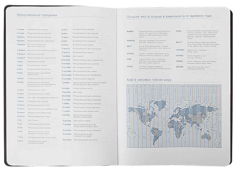 Ежедневник vivien, недатированный, зеленый. Размеры 15х21 см Материал искусственная кожа Вес (1 шт.) 446 г Транспортная упаковка 43,0x32,0x16,0 см Вес 12,50 кг Объем упаковки 0,022 м? Количество в упаковке 28 шт. Виды нанесения T1-Тиснение бесцветное T2-Тиснение фольгой (1 цвет) Ежедневник поставляется без индивидуальной упаковки. Блок ежедневника имеет оригинальную информационную часть, в которую входят: - календарь на 4 года, - международные праздники, - часовые пояса, - афоризмы на латыни, - фразеологизмы на английском, немецком и французском языках, - некоторые правила грамматики русского языка, - гимнастика для глаз. Ежедневник с гибкой обложкой, выполнен из популярного материала Brand, дополнен резинкой и ляссе серого цвета. Недатированный блок, 336 стр.
