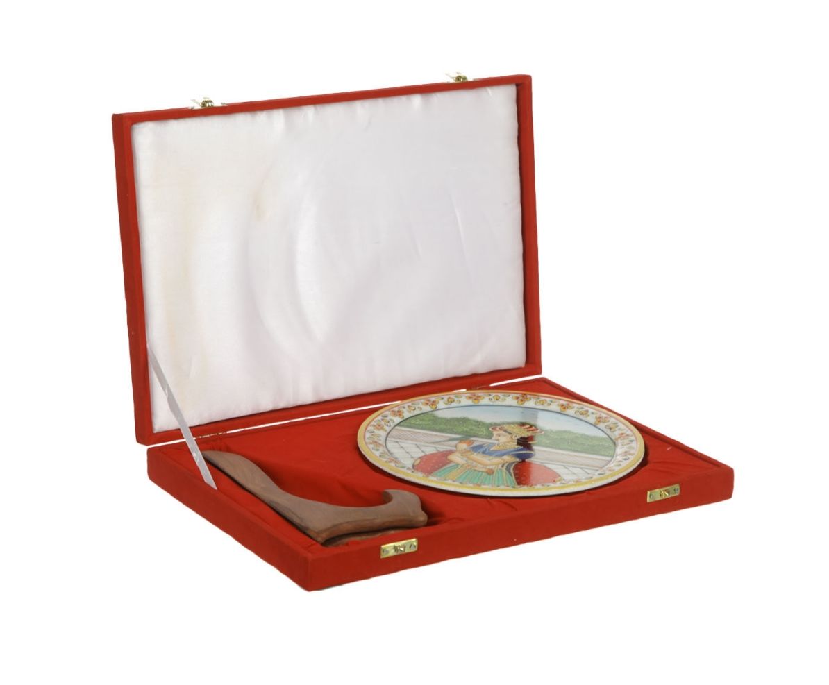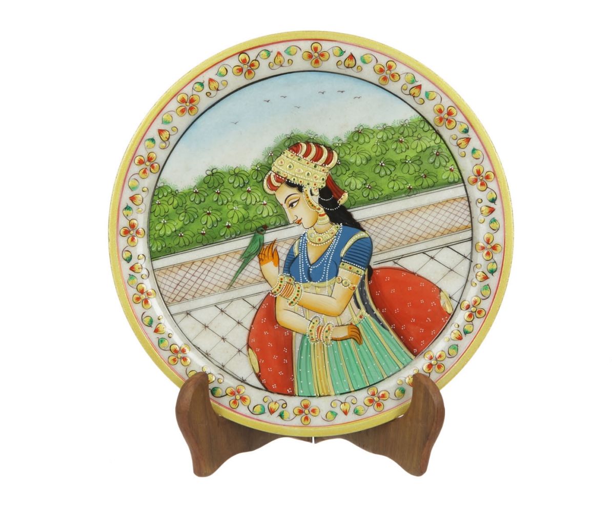 Панно леди (мрамор, роспись) D=22, в футляре с деревянной подставкой