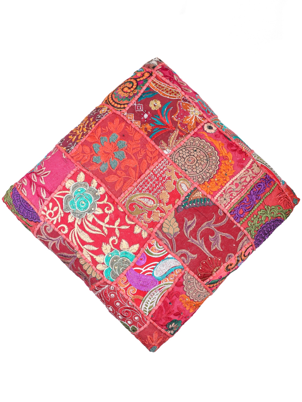 Пуф-табурет (дерево, текстиль) бордовый, мультиколор