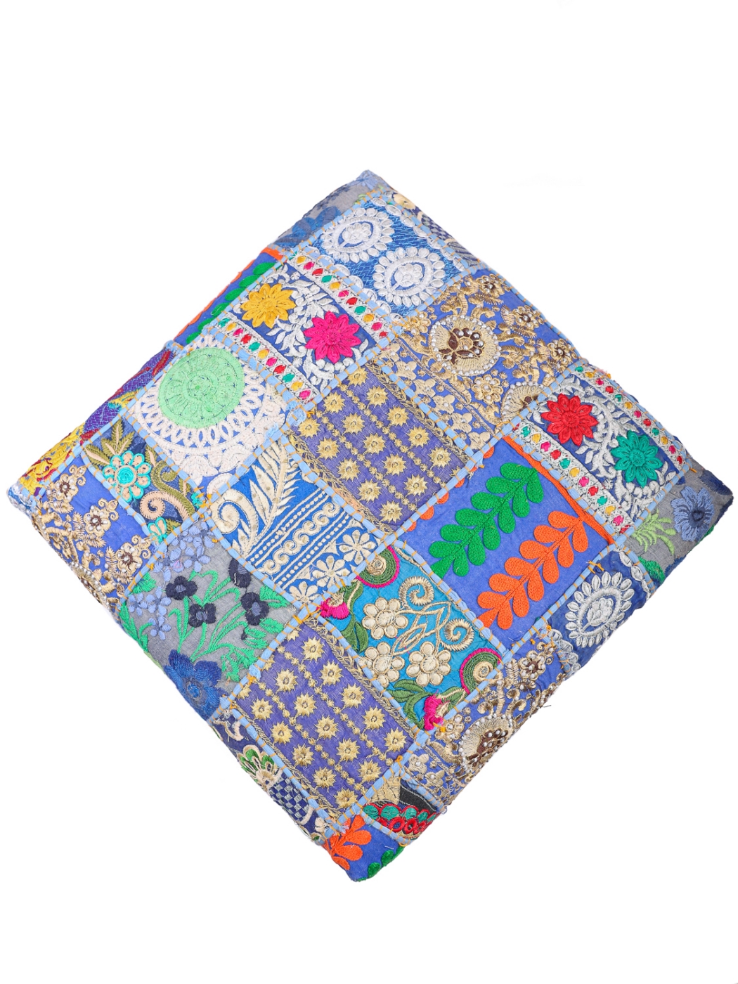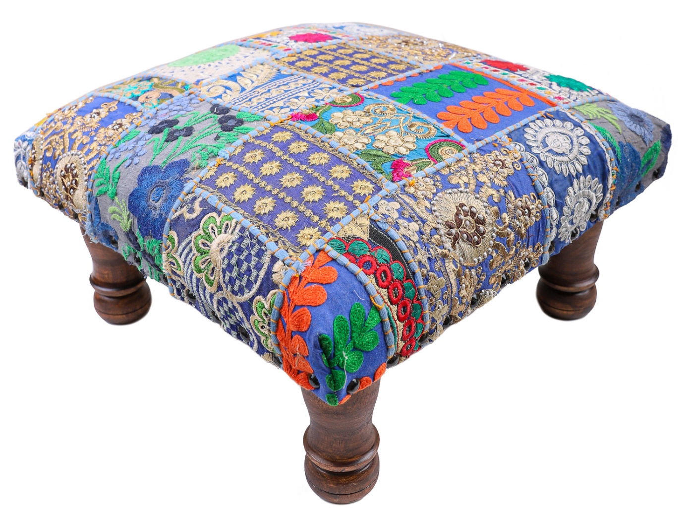 Пуф-табурет (дерево, текстиль) голубой, мультиколор