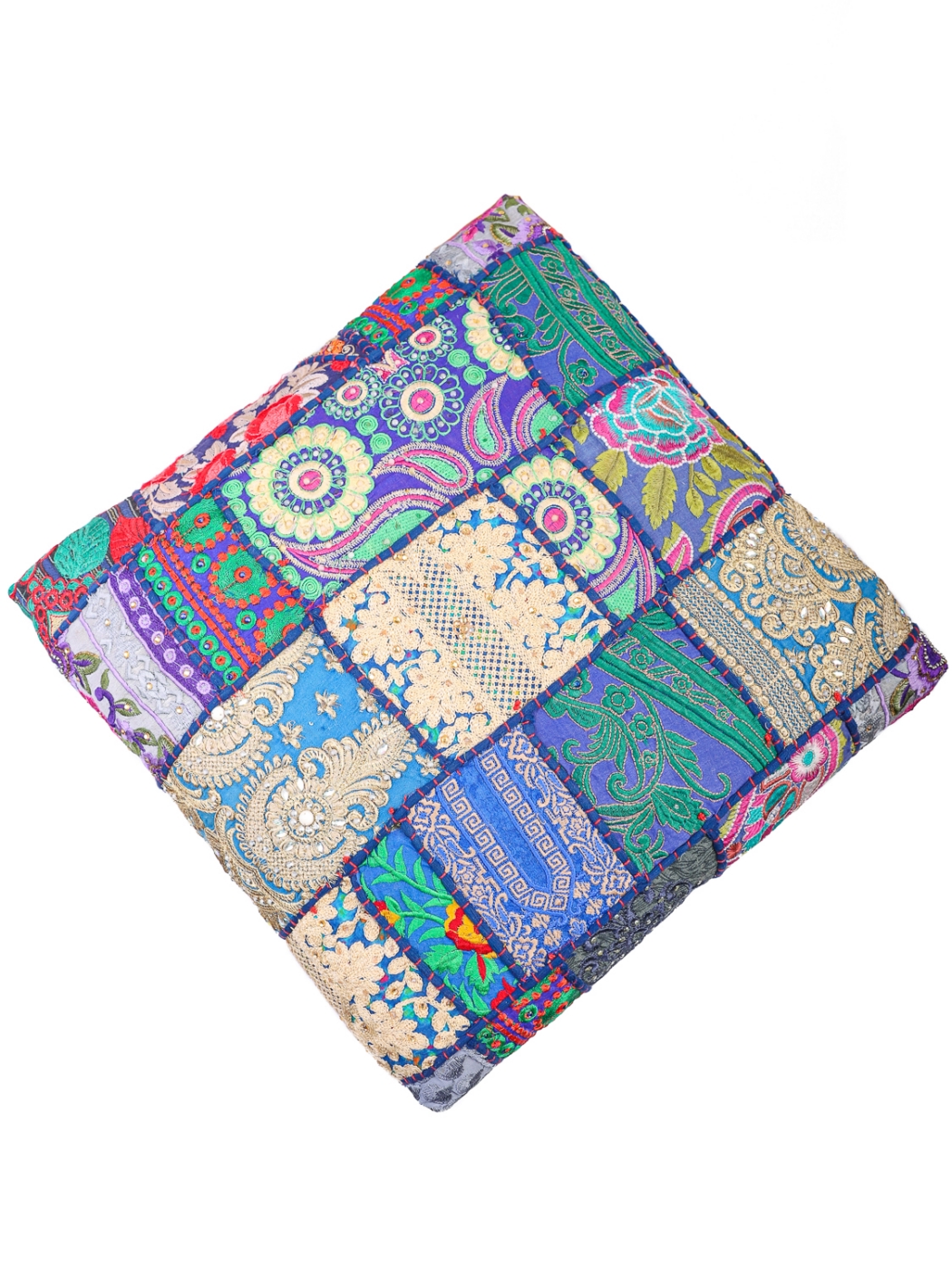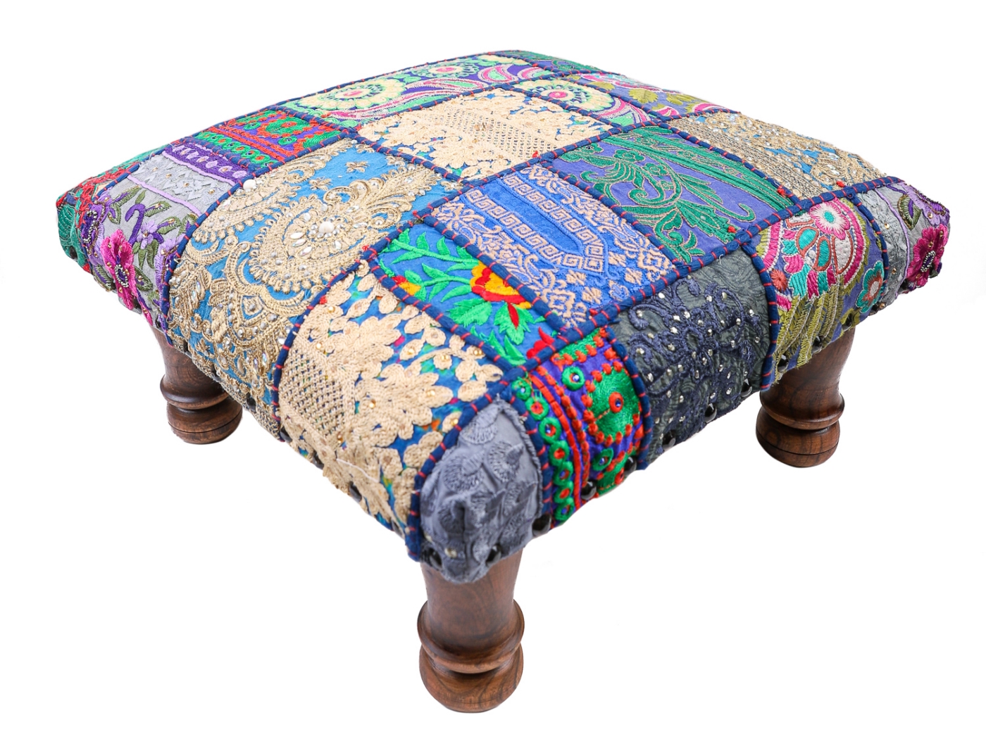 Пуф-табурет (дерево, текстиль) синий, мультиколор