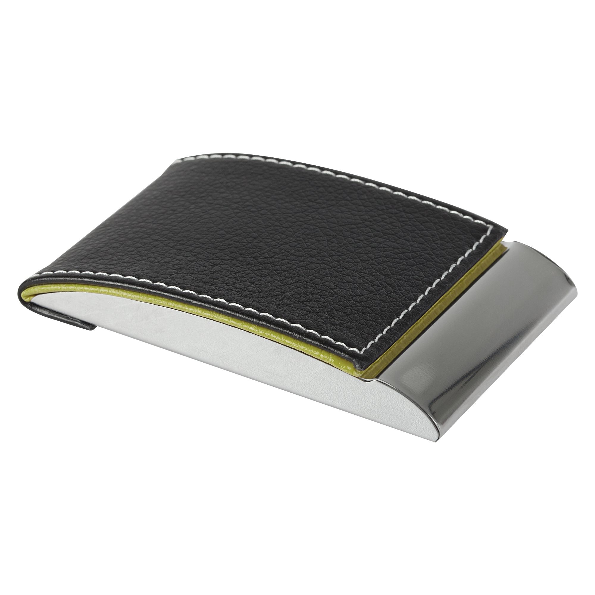 Визитница prestige, черная с зеленым. Размеры 9,8x6,3x1,5 см; упаковка: 10,5х7х1,7 см Материал металл; искусственная кожа Вес (1 шт.) 70,00 г Транспортная упаковка 29,0x32,0x48,0 см Вес 14,00 кг Объем упаковки 0,045 м? Количество в упаковке 200 шт. Виды нанесения LM1-Лазерная гравировка по металлу Вмещает 15 карточек, закрывается на магнит.