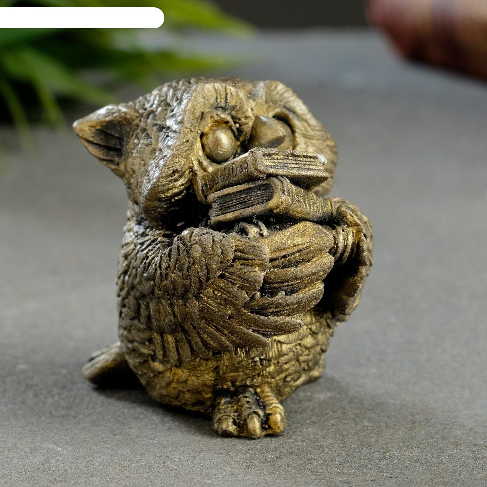 Статуэтка сова с книгами малая, состаренное золото, 5х5х5 см. Вес, гр: 66 Материал: Гипс Страна: Россия Бренд: Хорошие сувениры Цвет: Золотистый Высота, см: 5 xml-generator-id: 53 Форма фигуры: Сова, филин Материал: Гипс РосЗакуп: Да Температурное ограничение: Нет Склад: КИУ 10 Можно оставлять зимой на улице: Нет  развернуть описание ▼