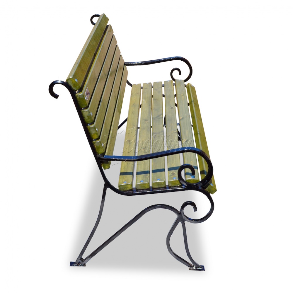 Скамейка кованая «вояж» 1,2 м. Подробные характеристики Скамейка поставляется в разобранном виде! Скамейка имеет дополнительную защиту от раскачивания. Материалы: Опоры: Cталь с коваными элементами. Покрыты порошковой полимерной краской. Возможность выбора цвета по каталогу RAL. Стандартный цвет (по умолчанию) - черный. Сиденье и спинка: Брус - ангарская сосна (вариант исполнения: лиственница, композитные материалы) различного сечения. Огнебиозащитные пропитки + тонировочный состав с антисептиком + два слоя яхтного лака с промежуточным шлифованием. Возможность выбора цвета из палитры. Фурнитура: Оцинкованная. Возможность выбора цвета фурнитуры по каталогу RAL. Стандартный цвет (по умолчанию) - серебристый. Возможность использования потайной/скрытой фурнитуры. Технические характеристики: Габаритные размеры: Высота: 800 мм Ширина: 640 мм Длина: 600 - 3000 мм Детальные размеры: Высота сиденья: 450 мм Ширина сиденья: 430 мм Длина посадочного места: 600 - 3000 мм О модели Кованая скамейка Вояж с подлокотником, выполнена в классическом дизайне, который переносит нас на улочки старой Европы. Изящные и утонченные кованые элементы защищены от коррозии методом порошковой окраски. Для дополнительной надежности, возможно крепление скамейки анкерами к основанию и установки дополнительных элементов для защиты скамейки от раскачивания. Богатый выбор цветовой гаммы окраски дерева, позволяет разместить скамейку Вояжв уже сформированном интерьере или экстерьере, выбрав наиболее подходящий цвет окраса древесины. Варианты цвета на выбор: , груша, еловая зелень, махагон, палисандр, рябина, тик,