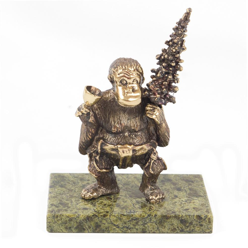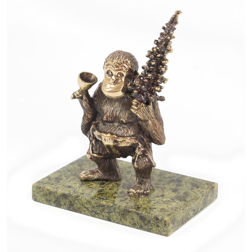 Статуэтка "обезьяна с елкой и фужером" бронза змеевик