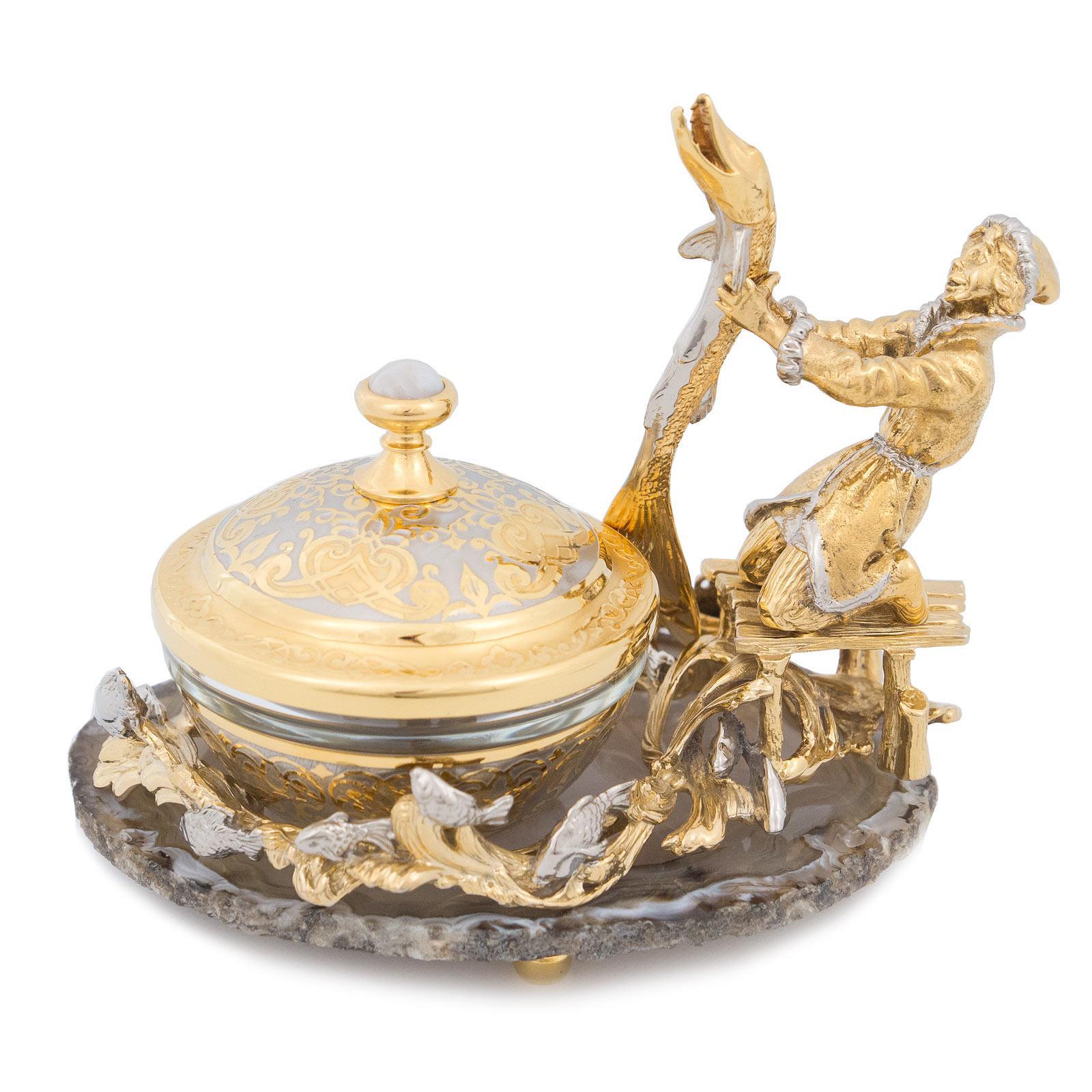 Икорница агат позолота 135х110х130 мм 1880 гр. Икорница агат позолота 135х110х130 мм 1880 гр. Икорница агат позолота 135х110х130 мм 1880 гр.